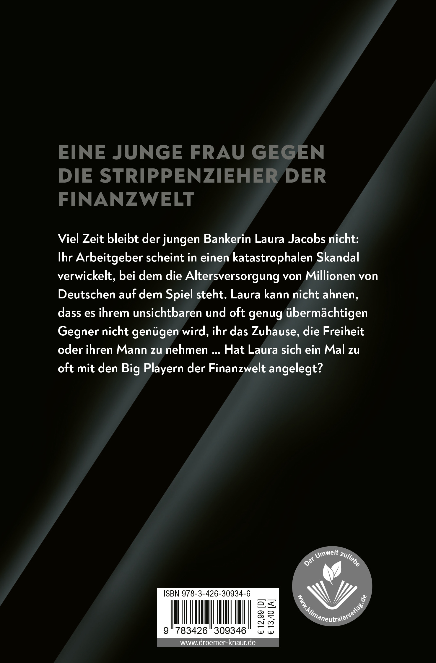 Viel Zeit bleibt der jungen Bankerin Laura Jacobs aus Berlin nicht, um sich von der fingierten Mord-Anklage zu erholen, mit der man sie aus dem Verkehr ziehen wollte: Ihr Arbeitgeber scheint in einen katastrophalen Skandal verwickelt, bei dem die Altersversorgung von Millionen von Deutschen auf dem Spiel steht.