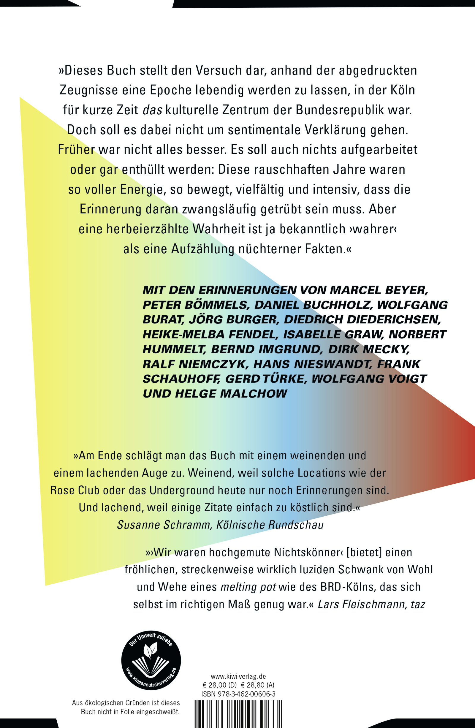 »Am Ende schlägt man das Buch mit einem weinenden und einem lachenden Auge zu. Weinend, weil solche Locations wie der Rose Club oder das Underground heute nur noch Erinnerungen sind. Und lachend, weil einige Zitate einfach zu köstlich sind.« Susanne Schramm Kölnische Rundschau 20231106