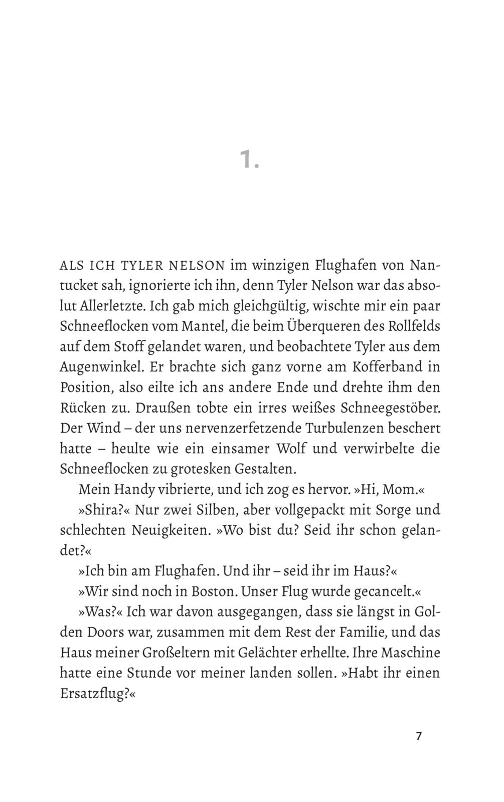 Eigentlich wollte Shira mit ihrer Familie Chanukka auf Nantucket feiern. Und sich bei der Gelegenheit den charmanten Isaak angeln. Obwohl sie noch nicht so genau weiß, wie, denn in Sachen Flirten hat sie null Talent. Doch ein Schneesturm legt den gesamten Flugverkehr lahm und Shira ist zunächst die einzige, die es auf die Insel schafft. Nur Tyler ist noch da, ihr Erzfeind von nebenan, den sie aber gnädigerweise aufnimmt, als bei ihm die Heizung ausfällt. Der Deal: Flirtnachhilfe gegen ein warmes Haus. Nach acht Nächten Flirttraining muss Shira allerdings einsehen, dass das Glück manchmal unerwartete Wege nimmt.