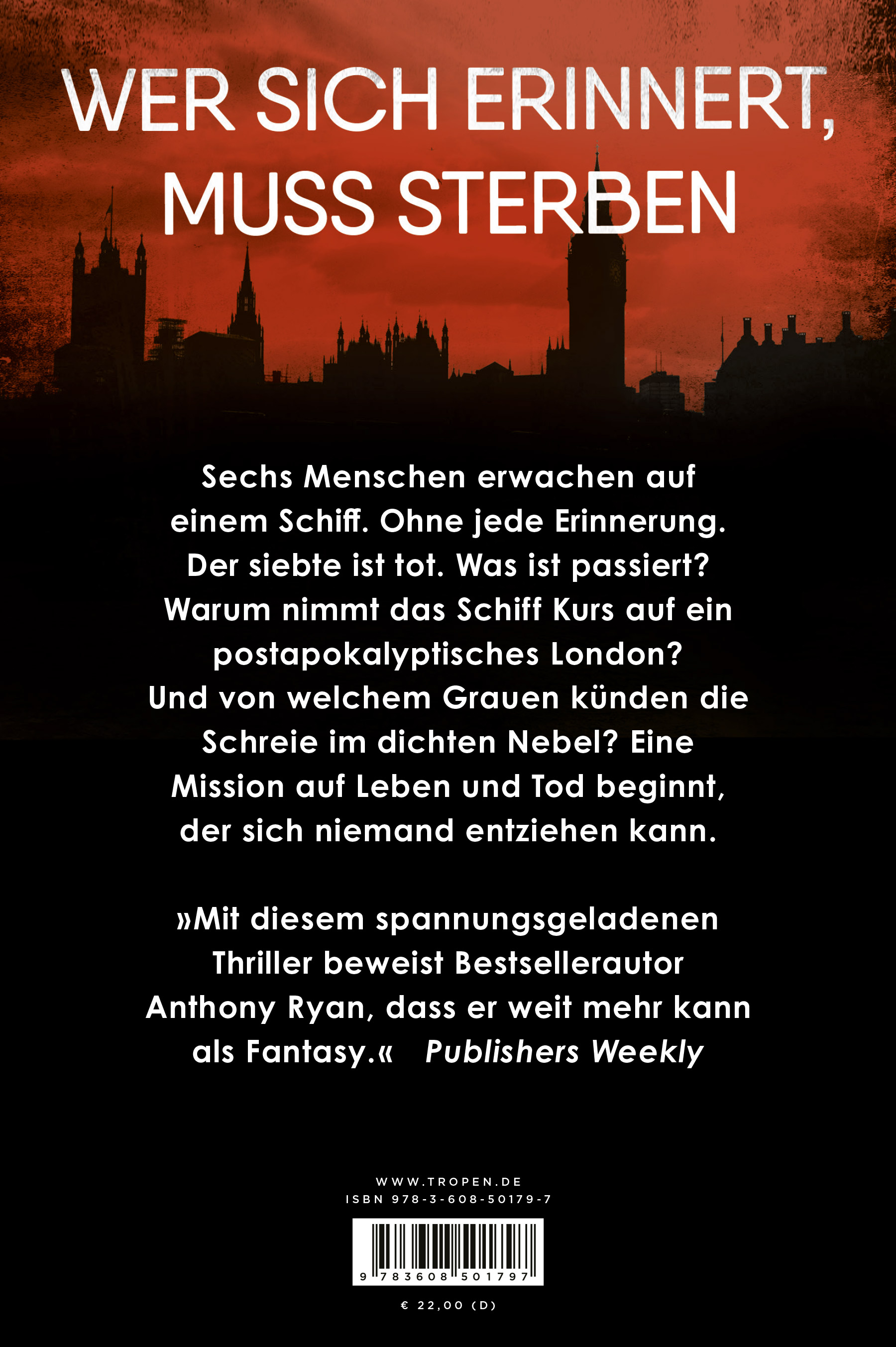 Sechs Menschen erwachen auf einem Schiff. Ohne jede Erinnerung. Der siebte ist tot. Was ist passiert? Warum nimmt das Schiff Kurs auf ein postapokalyptisches London? Und von welchem Grauen künden die Schreie im dichten Nebel? Eine Mission auf Leben und Tod beginnt, der sich niemand entziehen kann.