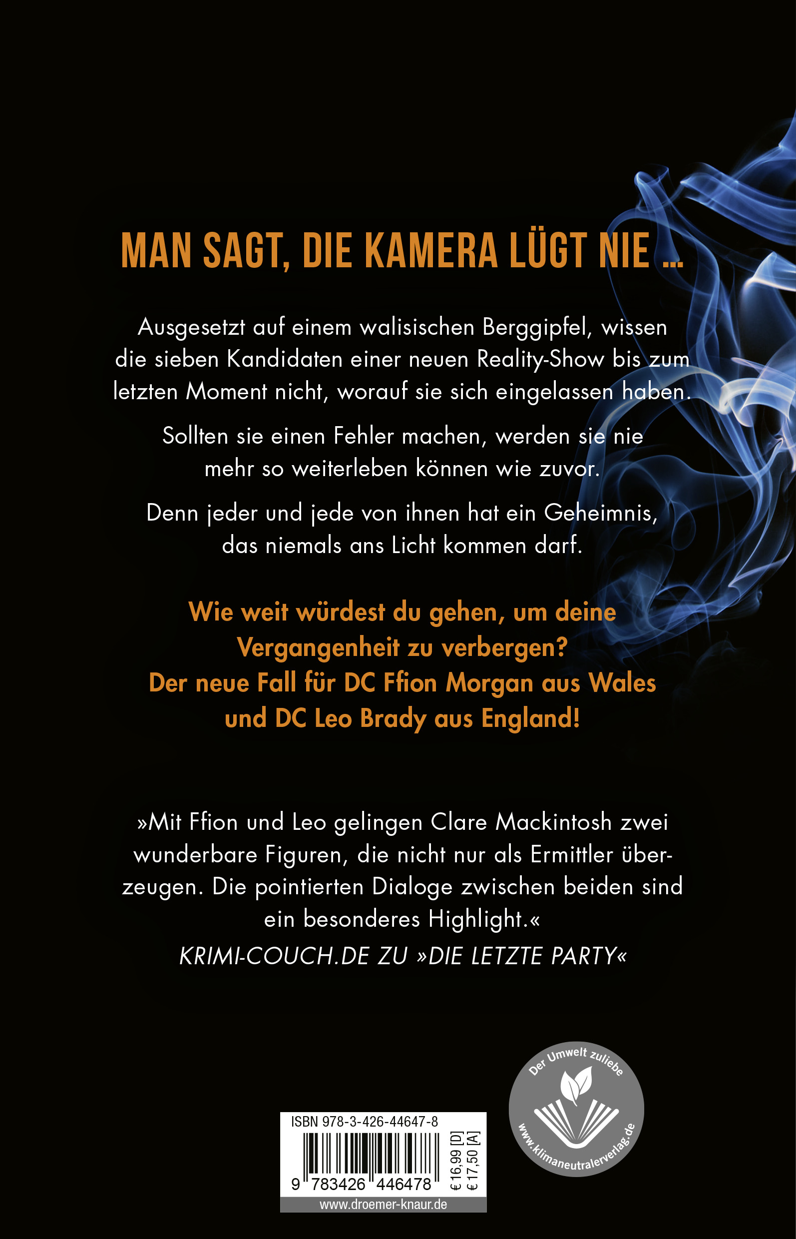 Auch in ihrem 2. psychologisch subtilen Krimi um das ungleiche Ermittler-Duo Ffion Morgan und Leo Brady - sie Waliserin und weiß, er Engländer und schwarz - liefert die britische Bestseller-Autorin Clare Mackintosh wieder jede Menge Twists und Intrigen vor der wunderbar atmosphärischen Landschaft von Wales.