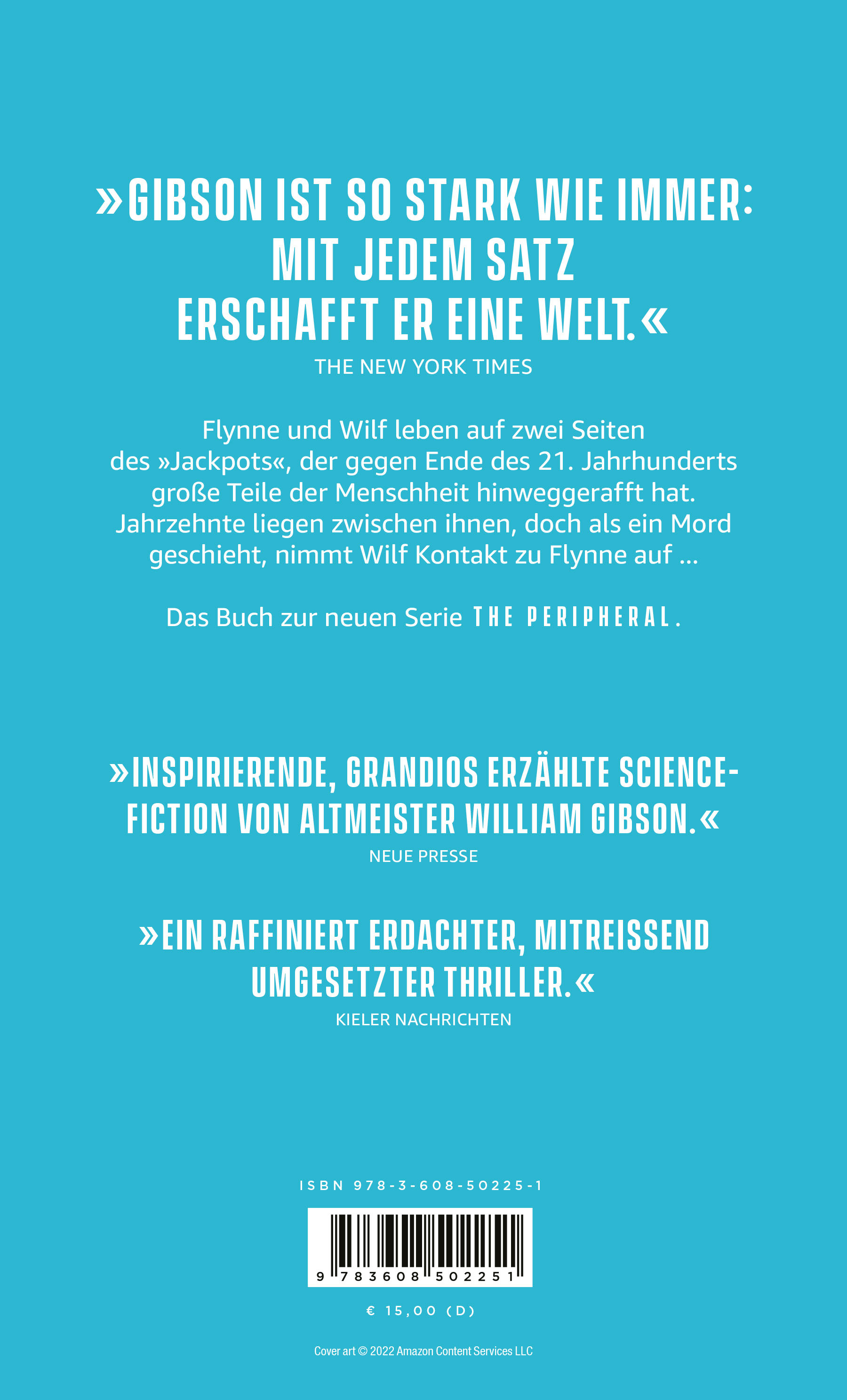 Flynne und Wilf leben auf zwei Seiten des »Jackpots«, der Apokalypse, die gegen Ende des 21. Jahrhunderts große Teile der Menschheit hinweggerafft hat. Jahrzehnte liegen zwischen ihnen, doch als ein Mord geschieht, nimmt Wilf Kontakt zu Flynne auf ...