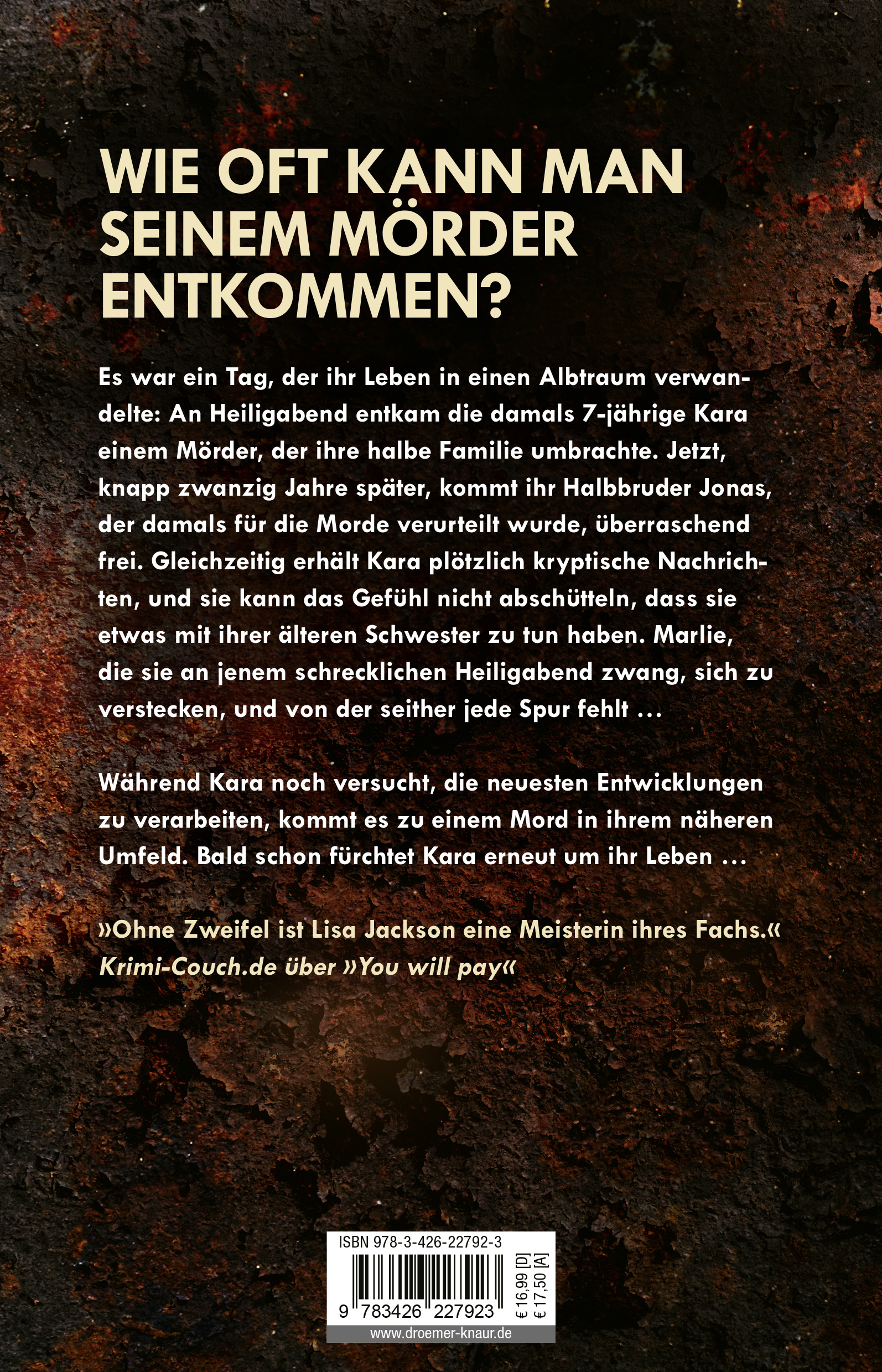 Es war ein Tag, der ihr Leben in einen Albtraum verwandelte: An Heiligabend entkam die damals 7-jährige Kara einem Mörder, der ihre halbe Familie umbrachte. Jetzt, knapp zwanzig Jahre später, kommt ihr Halbbruder Jonas, der damals für die Morde verurteilt wurde, überraschend frei.