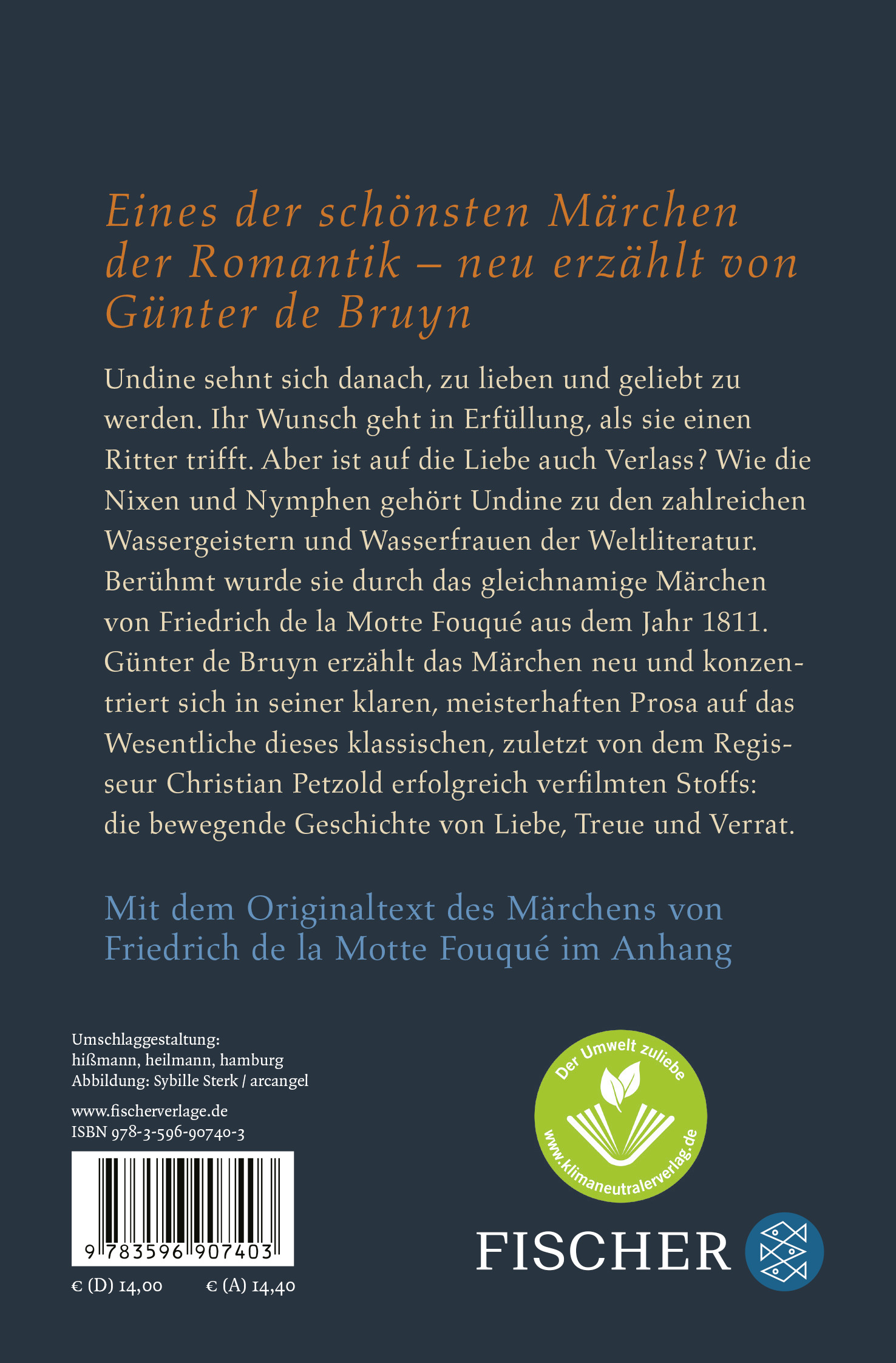 Undine sehnt sich danach, zu lieben und geliebt zu werden. Ihr Wunsch geht in Erfüllung, als sie einen Ritter trifft. Aber ist auf die Liebe auch Verlass? Wie die Nixen und Nymphen gehört Undine zu den zahlreichen Wassergeistern und Wasserfrauen der Weltliteratur. Berühmt wurde sie durch das gleichnamige Märchen von Friedrich de la Motte Fouqué aus dem Jahr 1811. Günter de Bruyn erzählt das Märchen neu und konzentriert sich in seiner klaren, meisterhaften Prosa auf das Wesentliche dieses klassischen, zuletzt von dem Regisseur Christian Petzold erfolgreich verfilmten Stoffs: die bewegende Geschichte von Liebe, Treue und Verrat.
