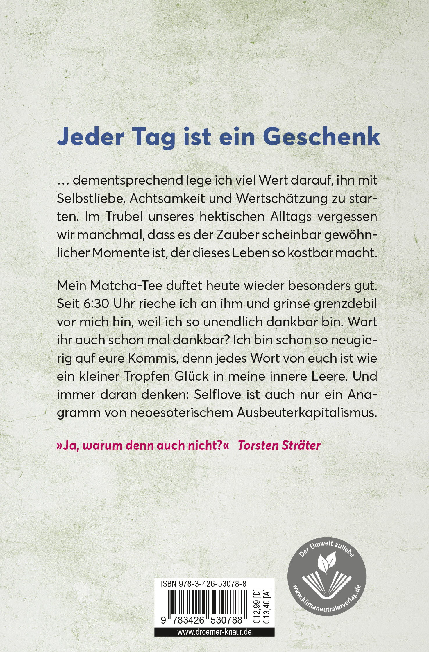 | Schlagworte | Absurd • Achtsamkeitswelle • Achtsamkeit und Humor • Alltagsbeobachtungen • Alltagswitz • Bücher Kabarett • Comedian • Comedian Bücher • Ekstase ist doch auch mal ganz schön • Erzählungen • erzählungen für erwachsene • Erzählungen Sammlung • Genauer betrachtet sind Menschen auch nur Leute • gute laune geschichten • Humor • Humor Bücher • humorvolle Bücher • humorvolle bücher für männer • Ich habe eine Axt • Im Regenbogen der guten Laune bin ich das Beige • Kabarett • Kabarett Buch • Kabarettist • Kurzgeschichten • Kurzgeschichten für Erwachsene • Kurzgeschichten für Erwachsene lustig • Kurzgeschichten für Männer • Kurzgeschichten Humor • Kurzgeschichten Sammlung • Kurzgeschichten schwarzer humor • Kurzgeschichten zum Nachdenken • Kurzprosa • Lippe liest • lustig • Lustige Bücher • lustige bücher für erwachsene • lustige bücher für männer • lustige Erzählungen • lustige Geschichten • lustige Romane • Nabelschau • Neo-Esoterik • Patrick Salmen • patrick salmen buch • Patrick Salmen Tour • Poetry Slam • Politik Humor • Politische Satire • rostrotkupferbraunbronze • Satire • Satire Buch • satire humor • Satirisch • Schwarzer Humor • Schwarzer Humor Buch • Selbstironie • Stadtneurotiker • Storys • Treffen sich zwei Träume beide platzen • urbane Selbstoptimierer • witzig • witzige Bücher • witzige Romane • Yoga • Zynismus |