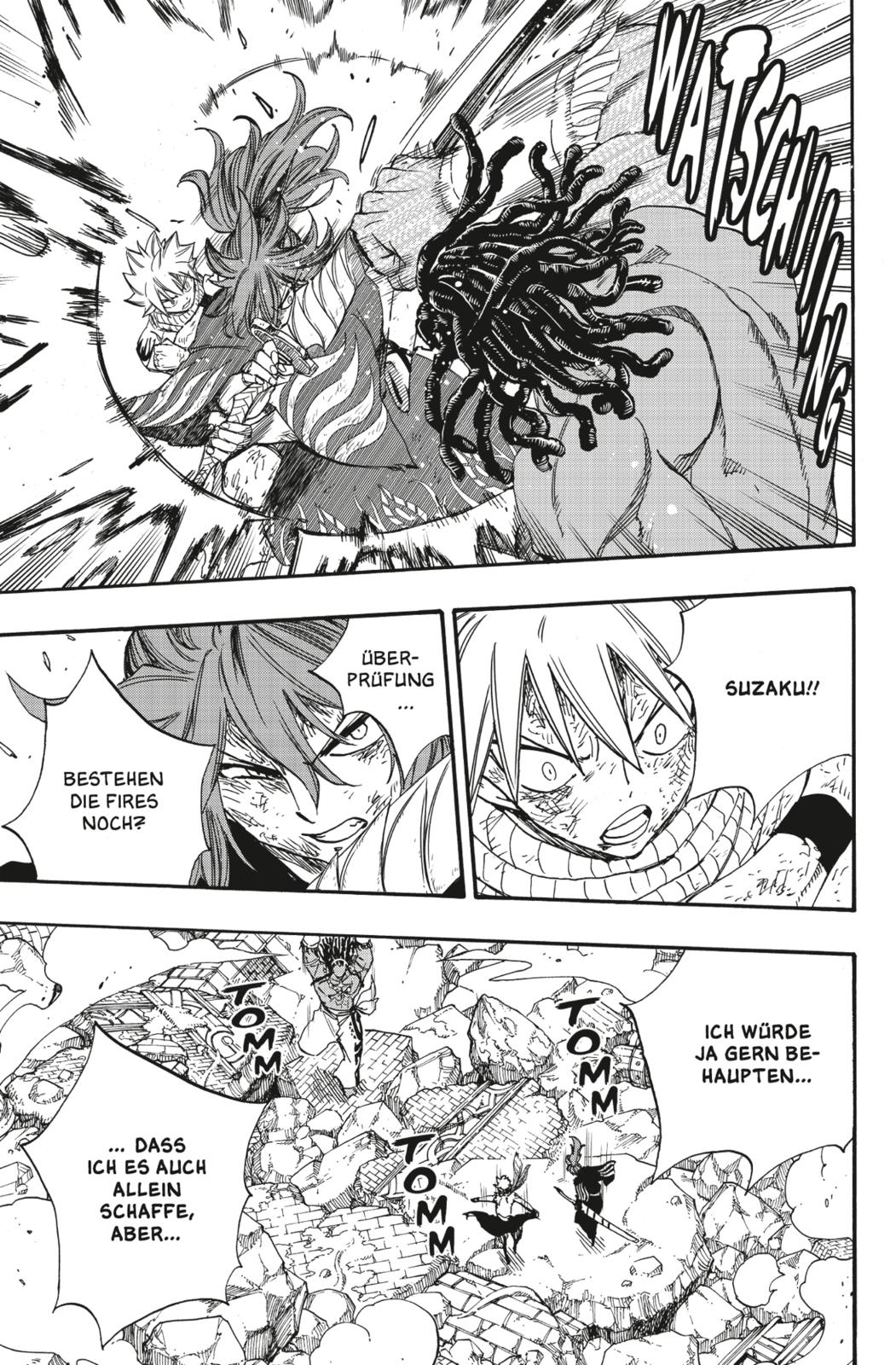 Der Erd-Götterdrache Dogramag ist nach hundert Jahren von den Toten auferstanden und hat nun Appetit auf Menschen. Ihm stellt sich ein Team entgegen, das über die Grenzen der Gilden hinausgeht: die Fires! Natsu und Suzaku greifen mit vereinten Kräften den Herrscher des Labyrinths an, aber können sie bei Dogramag etwas ausrichten?! Währenddessen bemerken Laxus und Kirin nichts von den Veränderungen und kämpfen weiter gegeneinander. Gibt es zwischen den beiden etwa eine Verbindung? Menschen und Drachen... Aufgrund der Ambitionen beider Seiten fliegen bald die Funken durch das Labyrinth!