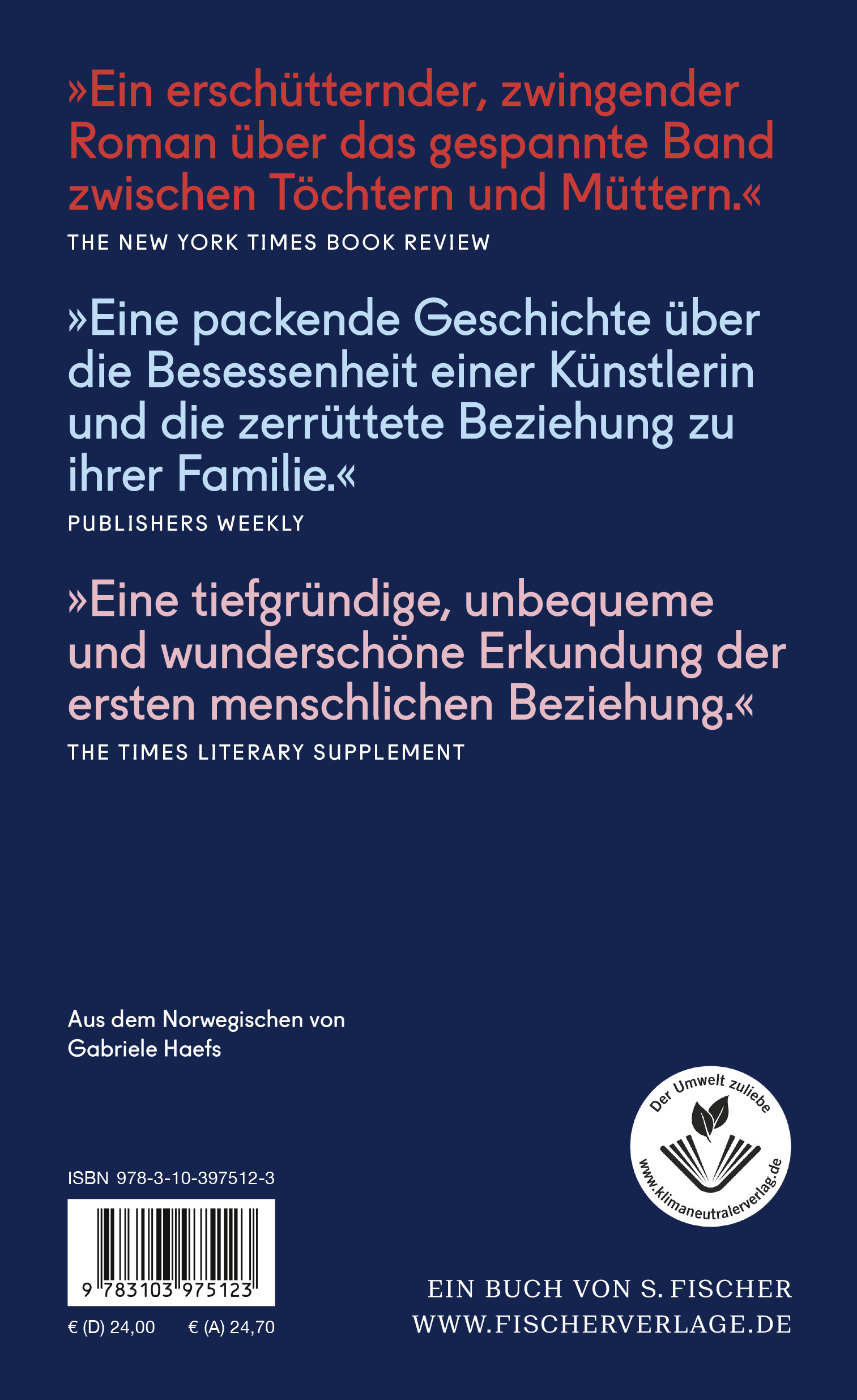 | Schlagworte | Anspruchsvolle Literatur • Beziehung • Dysfunktionale Famile • Ein Buch von S. Fischer • Familie • Familie Roman • Fjord • Kindheit • Knausgard • Künstlerin • Mutter • Mutter Tochter • Mutter-Tochter-Beziehung • Natur • Nominierung International Booker Prize • Norwegen • Oslo • Roman für Frauen • Schwester • schwierige Mutter-Tochter-Beziehung • Tochter |