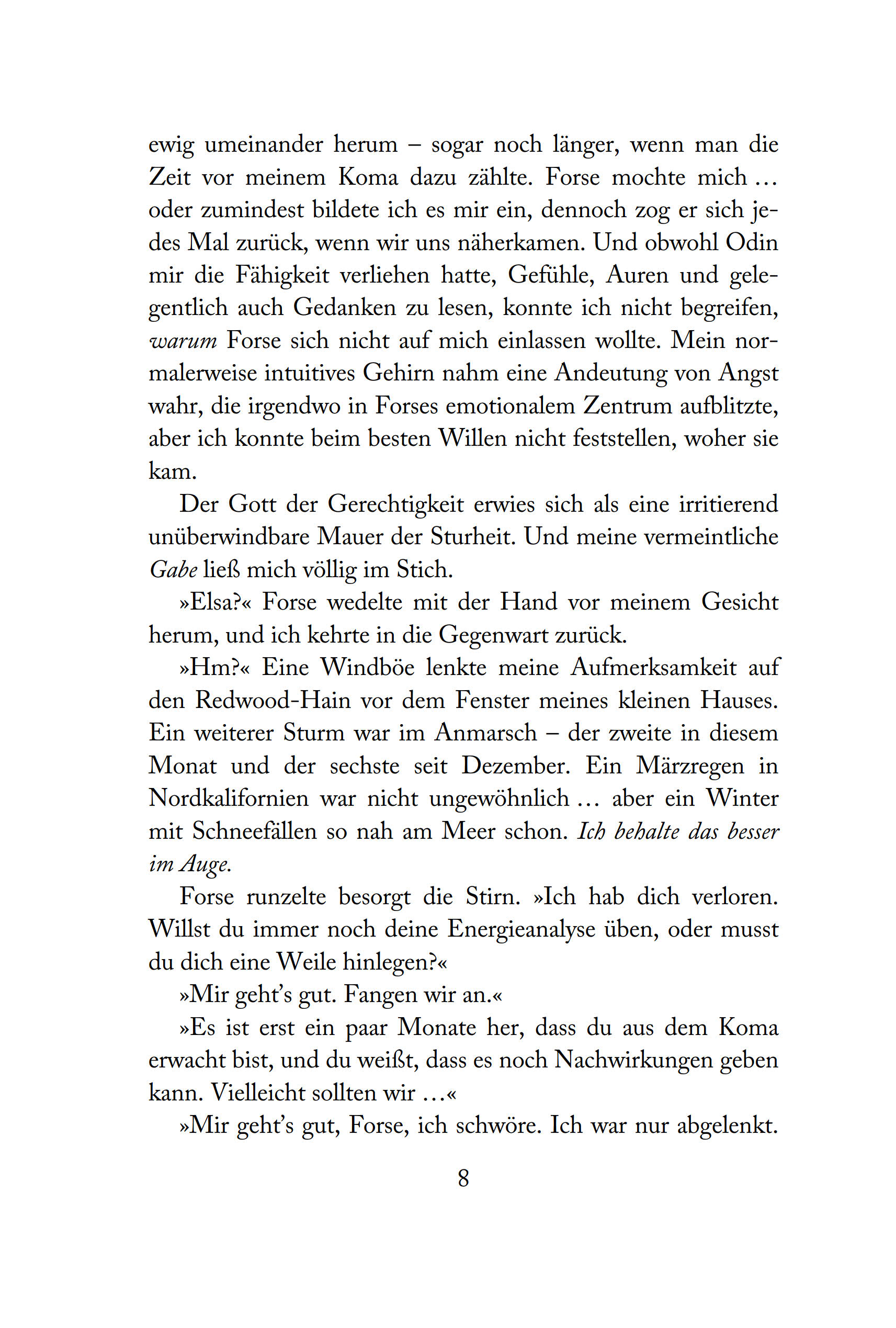 Band 3 der fesselnden Urban-Fantasy-Reihe rund um die nordische MythologieElsa, eine Hohe Heilerin und Tyrs kleine Schwester, korrigiert das Unheil, das diejenigen angerichtet haben, die sich für die dunkle Seite entschieden haben. Doch selbst Asgards Geheimwaffe kann nicht alle Wunden heilen - vor allem dann nicht, wenn ihr Schicksal mit dem Gott, den sie zu retten versucht, völlig verwoben ist. Ihre große Liebe Forse, der Gott der Gerechtigkeit, erwidert ihre Gefühle. Doch er fürchtet sich zu sehr: davor, dass Elsa wieder etwas passiert und er sie nicht beschützen kann; und davor, seiner Aufgabe nicht mehr gerecht zu werden, wenn er sein Herz zu sehr öffnet. Es ist ein schmaler Grat zwischen Liebe und Angst. Und Elsa muss sich bald entscheiden: Ist es wichtiger, die Welten in einem perfekten Gleichgewicht zu halten oder denjenigen, den sie über alle Maßen liebt, zu retten?