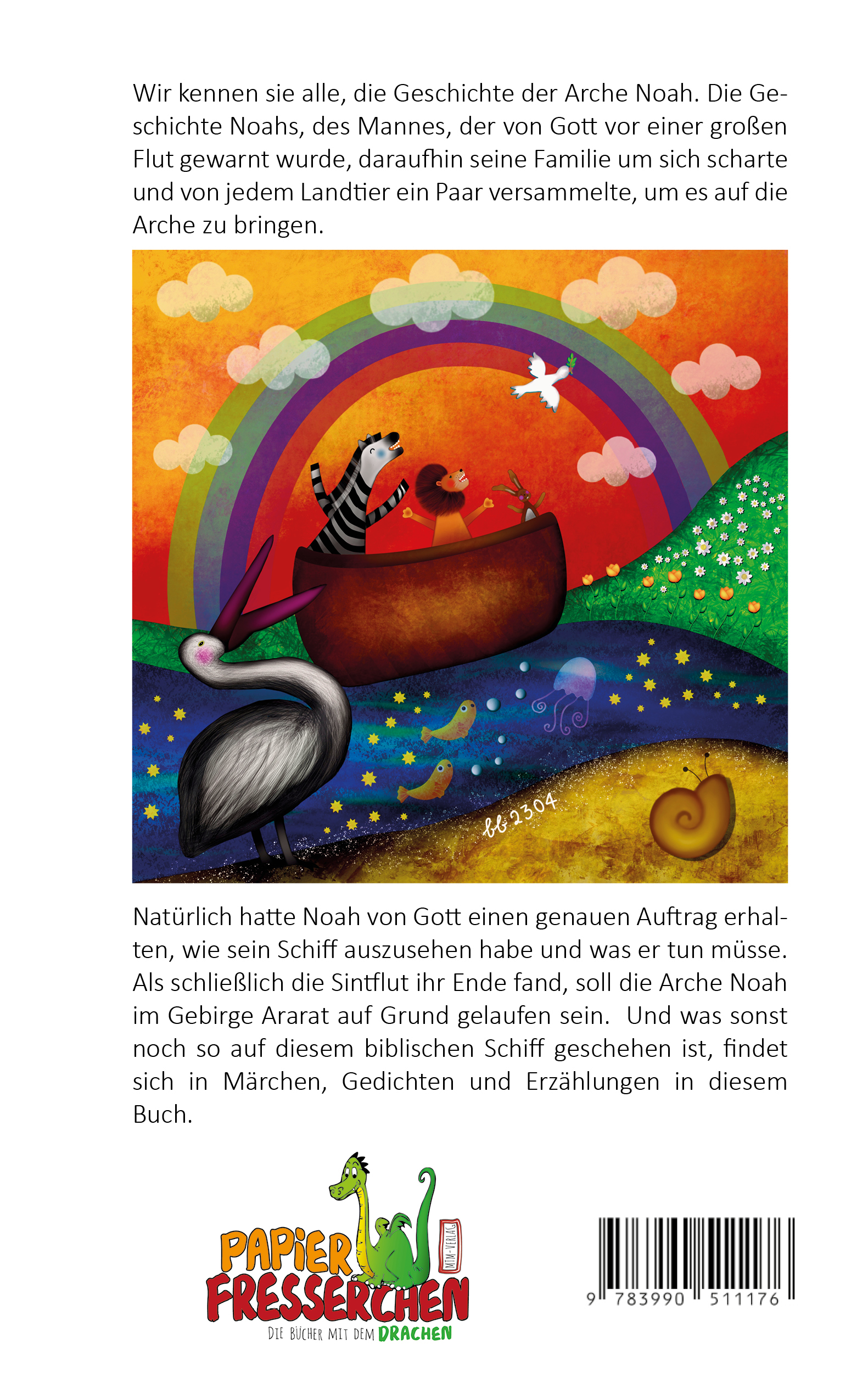 Wir kennen sie alle, die Geschichte der Arche Noah. Die Geschichte Noahs, des Mannes, der von Gott vor einer großen Flut gewarnt wurde, daraufhin seine Familie um sich scharte und von jedem Landtier ein Paar versammelte, um es auf die Arche zu bringen. Natürlich hatte Noah von Gott einen genauen Auftrag erhalten, wie sein Schiff auszusehen habe und was er tun müsse. Als schließlich die Sintflut ihr Ende fand, soll die Arche Noah im Gebirge Ararat auf Grund gelaufen sein. Und was sonst noch so auf diesem biblischen Schiff geschehen ist, findet sich in Märchen, Gedichten und Erzählungen in diesem Buch.