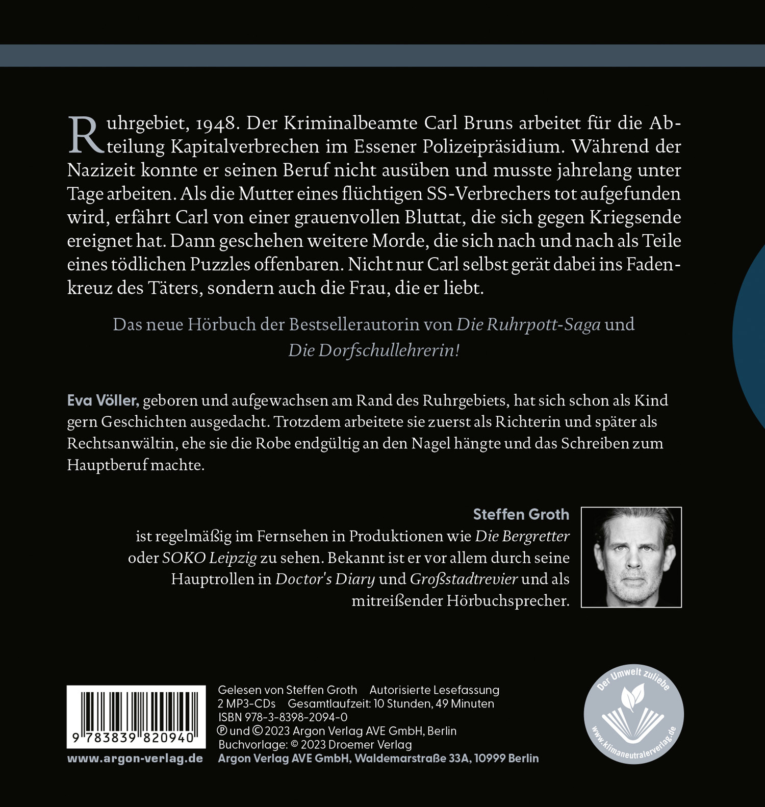 Ruhrgebiet, 1948. Der Kriminalbeamte Carl Bruns arbeitet für die Abteilung Kapitalverbrechen im Essener Polizeipräsidium, nachdem er während der Nazizeit seinen Beruf nicht ausüben konnte. Im Zuge von Mordermittlungen erfährt er von einer grauenvollen Bluttat, die sich drei Jahre zuvor gegen Kriegsende ereignet hat. Während er dem flüchtigen Täter von damals nachspürt, geschehen weitere Morde. Erst allmählich erkennt Carl Bruns, dass sie Teile eines tödlichen Puzzles sind. Nicht nur er selbst gerät dabei ins Fadenkreuz des Mörders, sondern auch die Frau, die er liebt - die verwitwete Krankenschwester Anne, die verzweifelt an eine bessere Zukunft für sich und ihre Schwestern glaubt. Doch Anne hütet ein düsteres Geheimnis, von dem auch Carl nichts ahnt ...