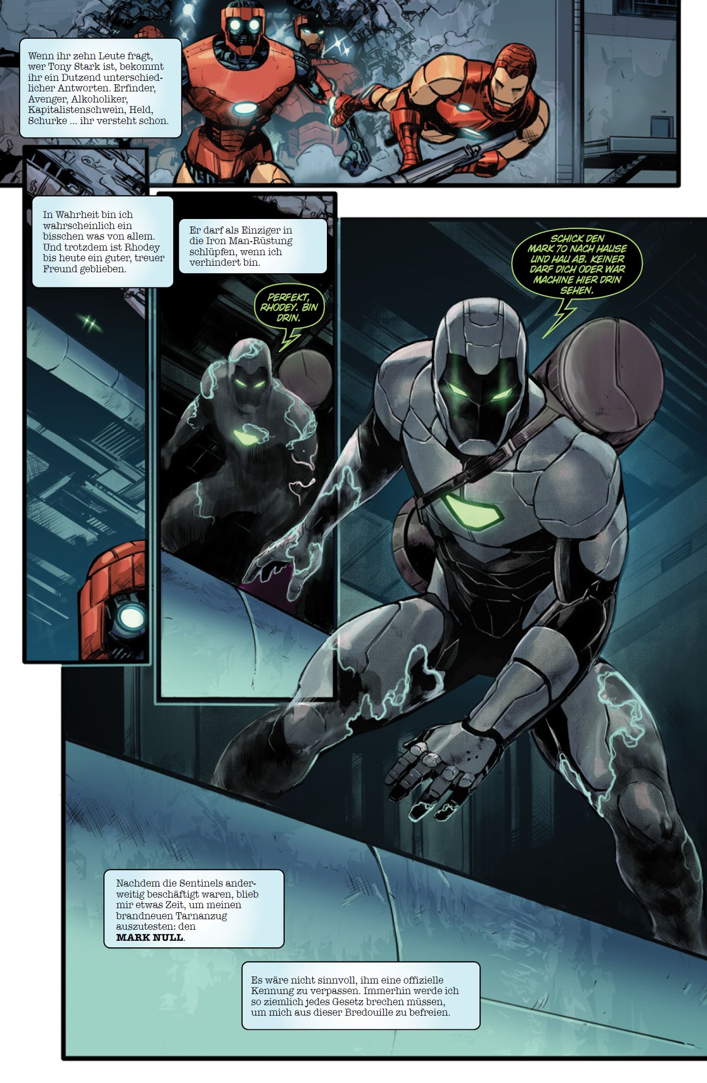 VORWORT von Christian Endres Ob Genie oder Geld: Tony Stark, dank einer Hightech-Rüstung der Avenger Iron Man, hatte alles. Doch dann nutzte der Sohn von Howard Stark sein Vermögen, um gefährliche Waffen vom Schwarzmarkt zu nehmen, indem er sie kaufte. Auf diese Weise verlor Tony so gut wie seinen ganzen Besitz. Zusätzlich attackierte ihn ein unbekannter Angreifer mit Auf tragskillern und zerbombte sein Heim. Telepathin Emma Frost, eine Lenkerin der Mutanten-Inselnation Krakoa, verriet Tony, dass der Mutanten-Hasser Feilong alias Kelvin Heng dahintersteckt. Schließlich gelang dem Industriellen sogar eine feindliche Übernahme der Firma Stark Unlimited. Und nun nutzt er Tonys Technologie dazu, neue Stark Sentinels zu bauen – Riesenroboter, die Jagd auf Mutanten machen! Tonys einzige Chance, das zu verhindern, besteht darin, seine Firma zu vernichten. Zuletzt unterstützte sein bester Freund Jim Rhodes alias War Machine ihn bei seinem Vorhaben. Zudem fand Tony heraus, dass Emma Frost das Alias Hazel Kendal nutzt. Und damit wären wir bei diesem neuen Band der Saga von Iron Man- und Die furchtlosen X-Men-Autor Gerry Duggan, der in der Mutanten-Ära Fall of X ein inoffizielles Crossover zwischen seinen beiden Top-Serien inszeniert. Deshalb gibt es, solltet ihr beiden Titeln folgen, etwas zu beachten. Nach dem ersten Kapitel dieses Iron Man-Bandes solltet ihr im Idealfall bereits Die furchtlosen X-Men 24 gelesen haben – das Heft ist bereits vor ein paar Monaten erschienen und präsentiert die jährliche Hellfire Gala (denn der Hellfire Club ist ein wichtiger Mosaikstein im Imperium der Mutanten, das derzeit von der Organisation Orchis brutal angegangen wird). Anschließend lest ihr diesen Band weiter und schiebt nach dem vierten Kapitel idealerweise das Heft Die furchtlosen X-Men 26 mit einem weiteren Teil des Crossovers ein. Und dann geht’s mit dem Rest dieses Bandes weiter. Aber keine Sorge: Die Story funktioniert natürlich auch, wenn ihr diesen Comic in einem Rutsch durchlest …