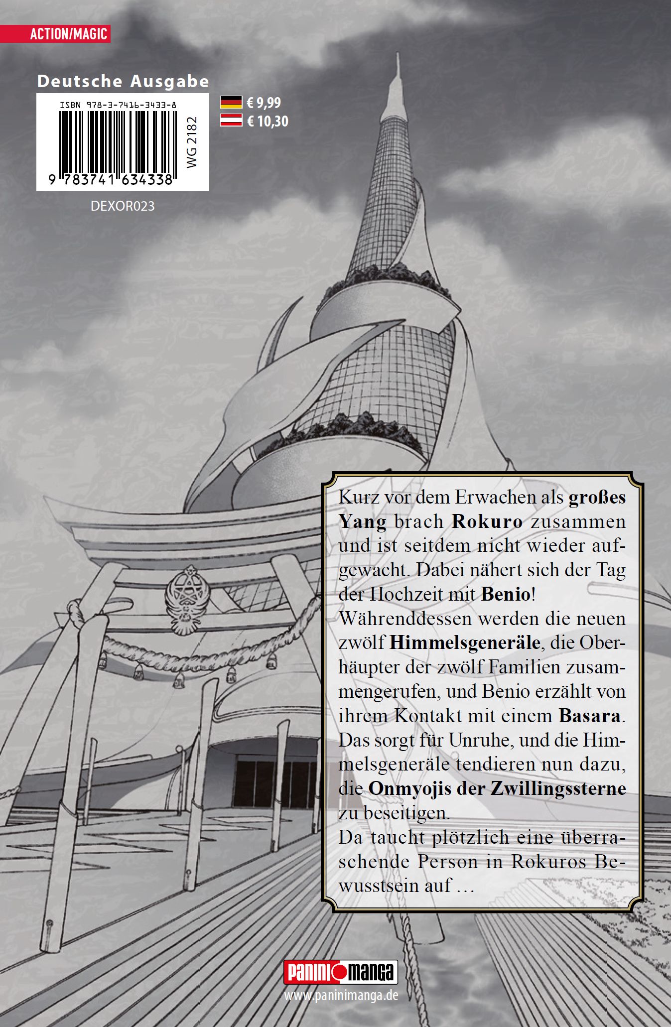 TWIN STAR EXORCISTS ist ein actiongeladener Shonen-Manga um eine Truppe Exorzisten, die das Böse vernichten wollen - jetzt auch mit Anime auf Crunchyroll!Die Unreinen, die Monster aus der fremden Welt Magano, fügen den Menschen Unheil zu. Rokuro Enmado ist ein Junge, der davon geträumt hat, der stärkste Onmyoji zu werden, der alle Unreinen läutert. Doch seit einem tragischen Zwischenfall lehnt er es ab, diesem Pfad weiter zu folgen. Er versucht ein ganz normales Leben zu führen, doch eines Tages taucht ein Mädchen namens Benio Adashino aus heiterem Himmel auf. Sie ist eine talentierte Onmyoji, und Rokuro gerät durch ihren Einfluss wieder in den Bann seines alten Traums ...Das erwartet dich in Band 23:Kurz vor dem Erwachen als das große Yang bricht Rokuro zusammen und seitdem kommt er nicht wieder zu sich. Währenddessen werden alle zwölf Himmelsgenerale der zwölf Familien zur Dringlichkeitssitzung einberufen. Dort erfahren sie alle, dass Benio Kontakt zu einem Basara hatte. Die Himmelsgeneräle sehen das als eine große Bedrohung und spielen mit dem Gedanken, die beiden Zwillingssterne zu beseitigen. Etwa zur gleichen Zeit taucht eine überraschende Person in Rokuros Traum auf ...Für Fans von Action-, Abenteuer- und Fantasy-Manga!