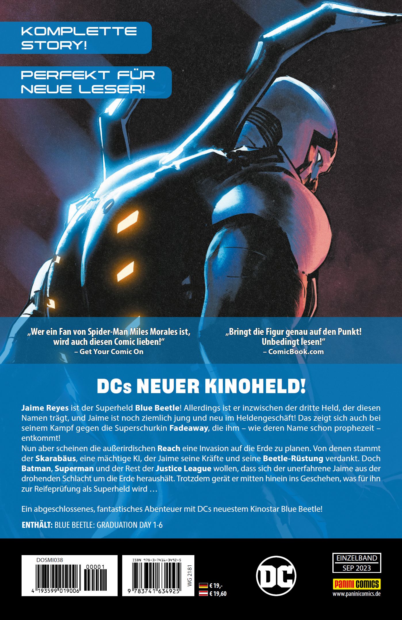 | Schlagworte | Batman • Blue Beetle • Comic • Comics • DC • DC-Held • DC-Helden • DC Superheld • DC-Superheld • Fadeaway • graduation day • H23 • Jaime Reyes • Justice league • Kinoflim • Panini • Paninicomics • Panini Comics • REACH • Skarabäus • Superheld • Superhelden • Superman |