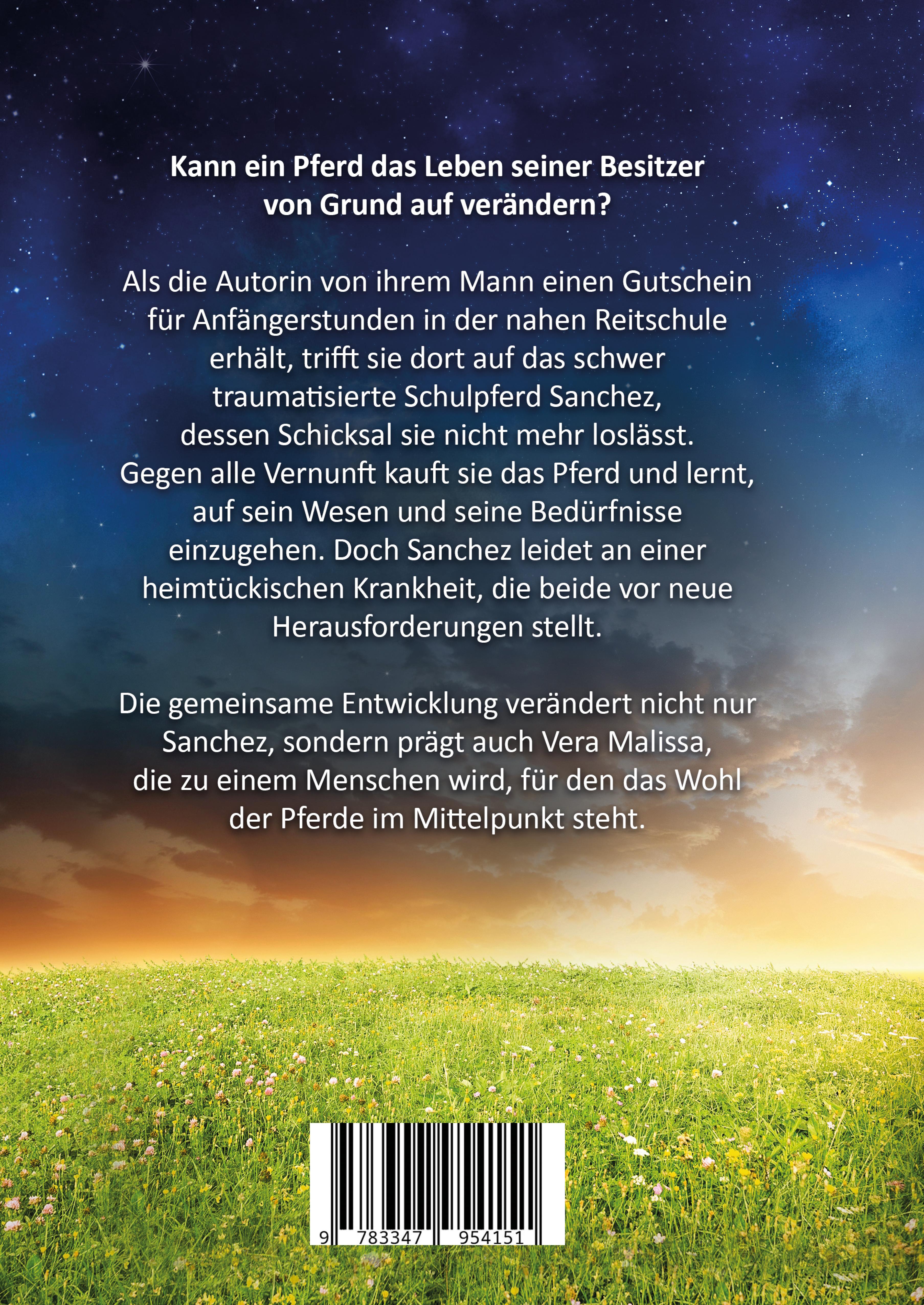 Kann ein Pferd das Leben seiner Besitzer von Grund auf verändern?Als die Autorin von ihrem Mann einen Gutschein für Anfängerstunden in der nahen Reitschule erhält, trifft sie dort auf das schwer traumatisierte Schulpferd Sanchez, dessen Schicksal sie nicht mehr loslässt. Gegen alle Vernunft kauft sie das Pferd und lernt, auf sein Wesen und seine Bedürfnisse einzugehen. Doch Sanchez leidet an einer heimtückischen Krankheit, die beide vor neue Herausforderungen stellt.Die gemeinsame Entwicklung verändert nicht nur Sanchez, sondern prägt auch Vera Malissa, die zu einem Menschen wird, für den das Wohl der Pferde im Mittelpunkt steht.Ein Buch über Zweifel, Angst und Liebe, wie es nur das Leben schreiben kann. Mit 12 farbigen Abbildungen.
