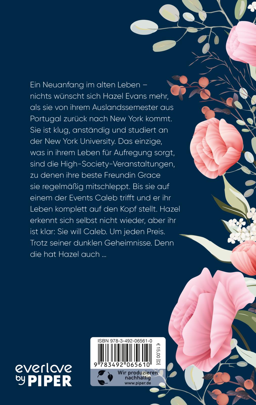 Ein Neuanfang im alten Leben - nichts wünscht sich Hazel Evans mehr, als sie von ihrem Auslandssemester aus Portugal zurück nach New York kommt. Sie ist klug, anständig und studiert an der NYU. Das einzige, was in ihrem Leben für Aufregung sorgt, sind die High-Society-Veranstaltungen, zu denen ihre beste Freundin Grace sie regelmäßig mitschleppt. Bis sie auf einem der Events Caleb trifft und er ihr Leben komplett auf den Kopf stellt. Hazel erkennt sich selbst nicht wieder, aber ihr ist klar: Sie will Caleb. Um jeden Preis. Trotz seiner dunklen Geheimnisse. Denn die hat Hazel auch ...