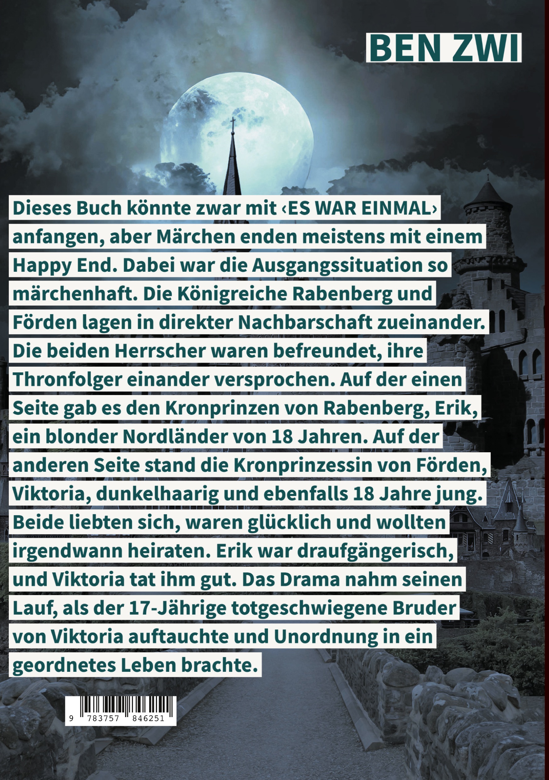 Dieses Buch könnte zwar mit »Es war einmal« anfangen, aber Märchen enden meistens mit einem Happy End. Dabei war die Ausgangssituation so märchenhaft. Die Königreiche Rabenberg und Förden lagen in direkter Nachbarschaft zueinander. Die beiden Herrscher waren befreundet, ihre Thronfolger einander versprochen. Auf der einen Seite gab es den Kronprinzen von Rabenberg, Erik, ein blonder Nordländer von 18 Jahren. Auf der anderen Seite stand die Kronprinzessin von Förden, Viktoria, dunkelhaarig und ebenfalls 18 Jahre jung. Beide liebten sich, waren glücklich und wollten irgendwann heiraten. Erik war draufgängerisch, und Viktoria tat ihm gut. Das Drama nahm seinen Lauf, als der 17-Jährige totgeschwiegene Bruder von Viktoria auftauchte und Unordnung in ein geordnetes Leben brachte.