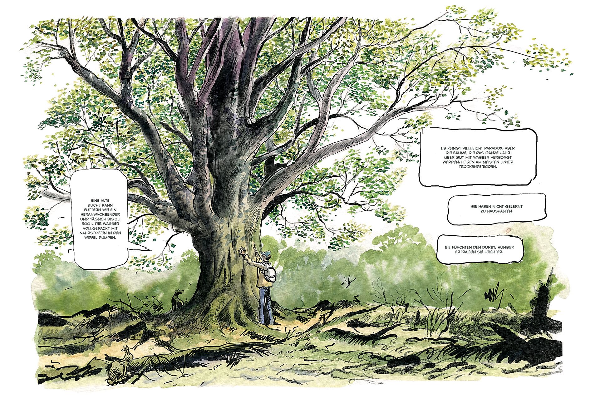 Im Wald geschehen die erstaunlichsten Dinge: In seiner Graphic Novel nimmt uns Peter Wohlleben mit auf eine farbenprächtige Reise, bei der wir den weltberühmten Förster zu den Wurzeln seiner verblüffenden Entdeckungen begleiten. Neue Perspektiven und Hintergründe machen die Entdeckungstour zu einem spannenden Abenteuer mit einer Fülle an ungeahnten Einsichten. Auf Schritt und Tritt begleiten wir Peter Wohlleben, wenn er nach und nach die Geheimnisse der Bäume lüftet; wir staunen mit ihm und erfahren ganz unmittelbar allerhand Faszinierendes über den Wald. Die Graphic Novel, aufwendig und mit unzähligen, liebevollen Details von dem renommierten französischen Künstler Benjamin Flao illustriert, lässt uns »Das geheime Leben der Bäume« hautnah und völlig neu erleben. Ein echtes Erlebnis für die Sinne - voller Erkenntnisse über die wunderbare und so verletzliche Welt der Bäume!
