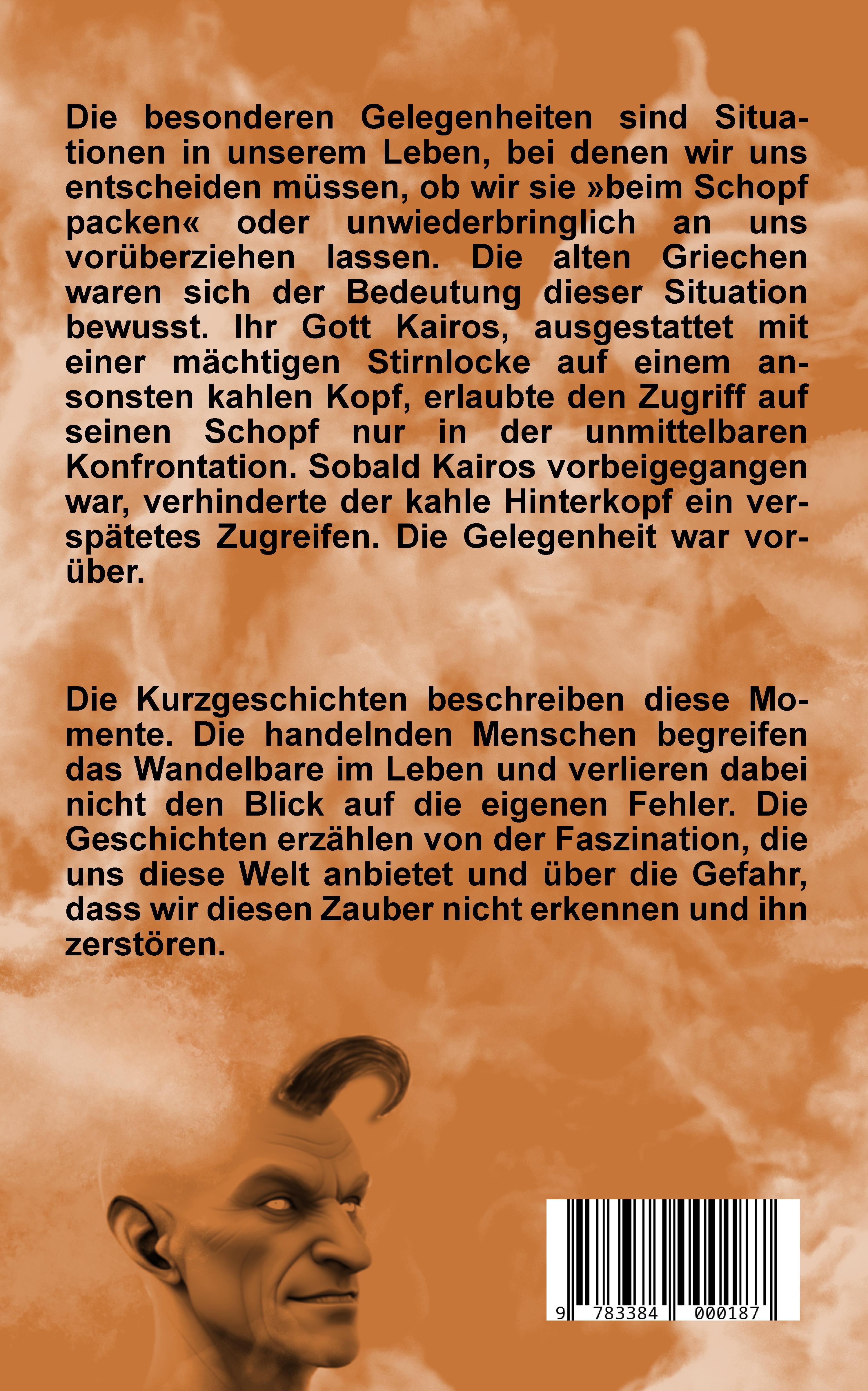 Die besonderen Gelegenheiten sind Situationen in unserem Leben, bei denen wir uns entscheiden müssen, ob wir sie »beim Schopf packen« oder unwiederbringlich an uns vorüberziehen lassen. Die alten Griechen waren sich der Bedeutung dieser Situationen bewusst. Ihr Gott Kairos, ausgestattet mit einer mächtigen Stirnlocke auf einem ansonsten kahlen Kopf, erlaubte den Zugriff auf seinen Schopf nur in der unmittelbaren Konfrontation. Sobald Kairos vorbeigegangen war, verhinderte der kahle Hinterkopf ein verspätetes Zugreifen. Die Gelegenheit war vorüber.