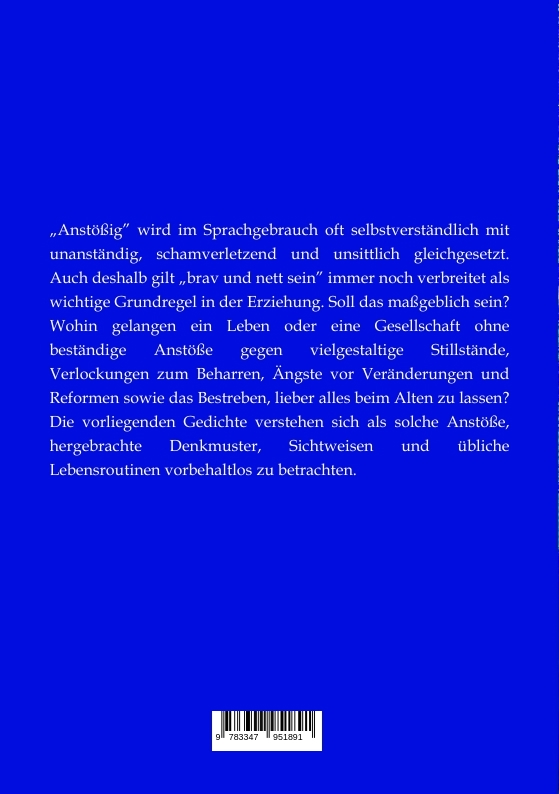 Die vorliegenden Anstöße zum Nachdenken über Gegenwäriges, Alltägliches, Persönliches sollen in Bewegung bringen und unreflektiertes Hinnehmen von Gewohntem, Überkommenem, Vorgegebenem und Verlangtem verhindern helfen und damit einer Gleichschrittgesellschaft vorbeugen.