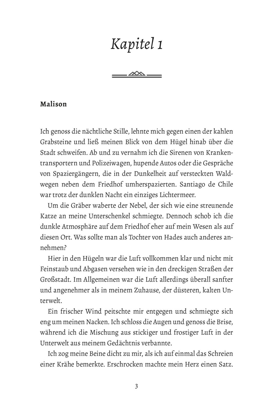 Malison Hades ist unerschrocken, gerissen und die beste Kopfgeldjägerin der Unterwelt. Doch als sie auf den mysteriösen Wandler Ethan Bones angesetzt wird, kommen ihr erstmals Zweifel an den Aufträgen ihres Vaters, dem Gott der Unterwelt und der Toten. Zwischen ihrer menschlichen und dämonischen Seite hin- und hergerissen, spürt sie eine magische Verbindung zu Ethan, die etwas zu bedeuten haben muss. Deswegen hilft sie dem seltenen Greif bei der Flucht, anstatt ihn an Hades auszuliefern. Die restlichen Kopfgeldjäger lassen allerdings nicht lange auf sich warten und so beginnt ein Wettlauf mit der Zeit, bei dem schnell klar wird, dass Hades weitaus mehr von Ethan will als nur seine Seele. Denn Ethan ist der Schlüssel zu einem perfiden Plan, den Hades schon seit langem verfolgt ...
