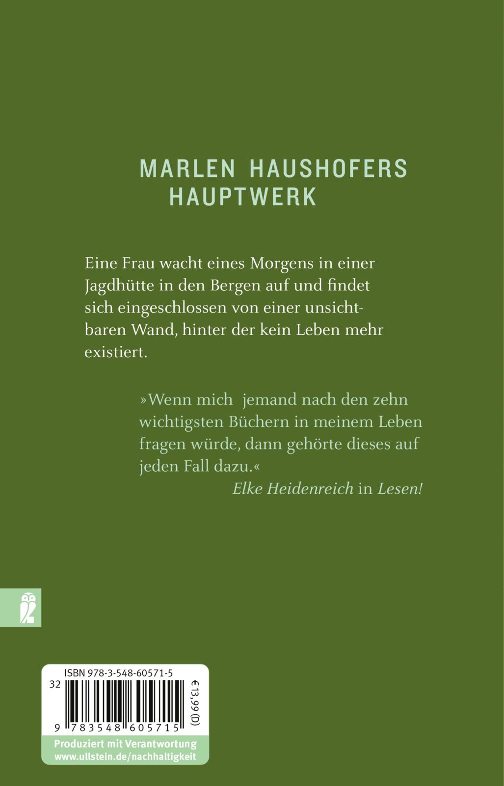 Eine unsichtbare, undurchdringliche Wand, jenseits derer Totenstille herrscht, schiebt sich auf einmal zwischen das Tal, in dem die Ich-Erzählerin lebt, und die Außenwelt . . .