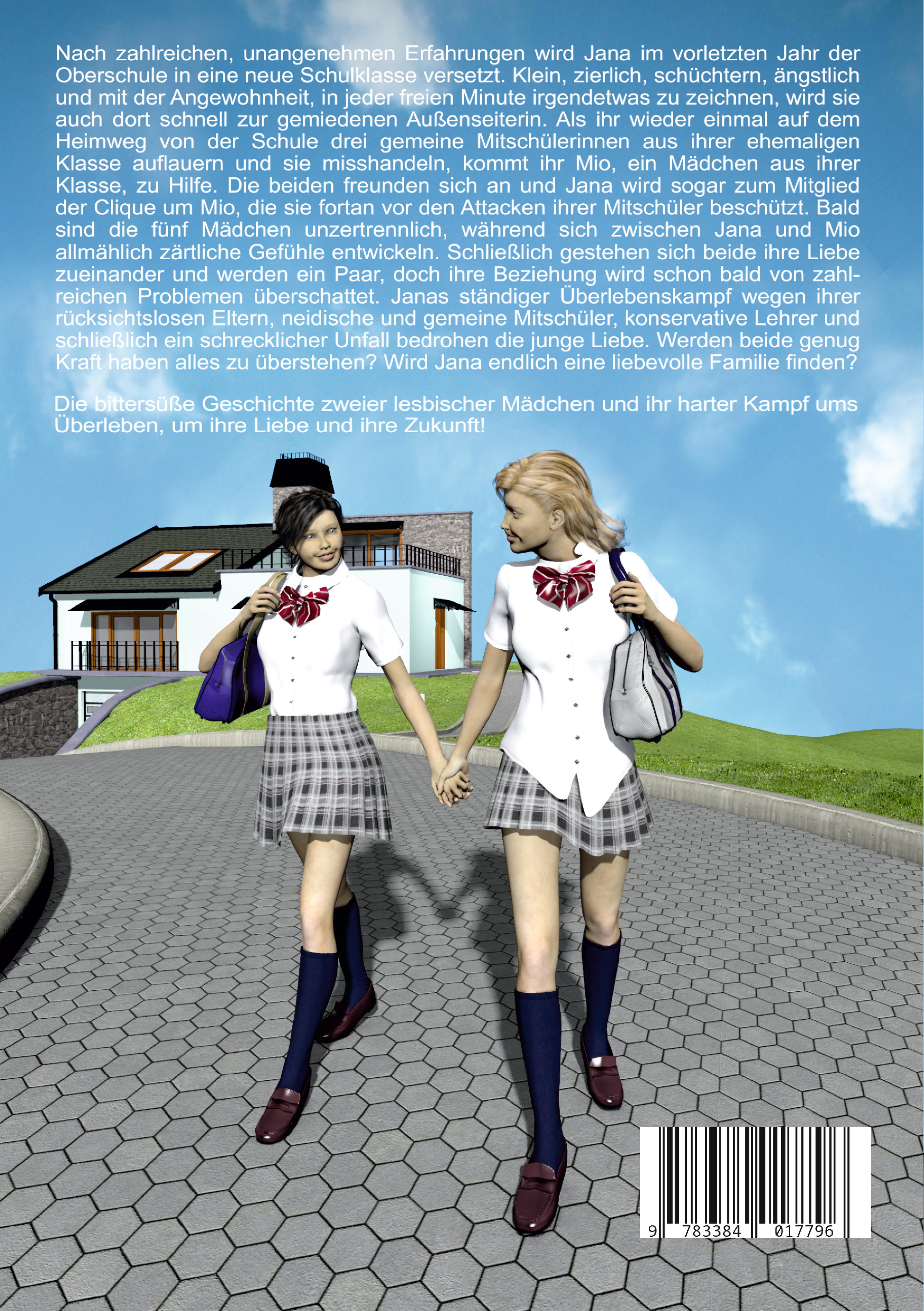 Nach zahlreichen unangenehmen Erfahrungen wird Jana im vorletzten Jahr der Oberschule in eine neue Schulklasse versetzt. Klein, zierlich, schüchtern, ängstlich und mit der Angewohnheit, in jeder freien Minute irgendetwas zu zeichnen, wird sie auch dort schnell zur gemiedenen Außenseiterin. Als ihr wieder einmal auf dem Heimweg von der Schule drei gemeine Mitschülerinnen aus ihrer ehemaligen Klasse auflauern und sie misshandeln, kommt ihr Mio, ein Mädchen aus ihrer Klasse, zu Hilfe. Die beiden freunden sich an und Jana wird sogar zum Mitglied der Clique um Mio, die sie fortan vor den Attacken ihrer Mitschüler beschützt. Bald sind die fünf Mädchen unzertrennlich, während sich zwischen Jana und Mio allmählich zärtliche Gefühle entwickeln. Schließlich gestehen sich beide ihre Liebe zueinander und werden ein Paar, doch ihre Beziehung wird schon bald von zahlreichen Problemen überschattet. Janas ständiger Überlebenskampf wegen ihrer rücksichtslosen Eltern, neidische und gemeine Mitschüler, konservative Lehrer und schließlich ein schrecklicher Unfall bedrohen die junge Liebe. Werden beide genug Kraft haben alles zu überstehen? Wird Jana endlich eine liebevolle Familie finden?Die bittersüße Geschichte zweier lesbischer Mädchen und ihr harter Kampf ums Überleben, um ihre Liebe und ihre Zukunft!Band 1 der Girls-Love Erzählung mit viel Gefühl, Spannung und Humor.Mit Illustrationen des Autors.