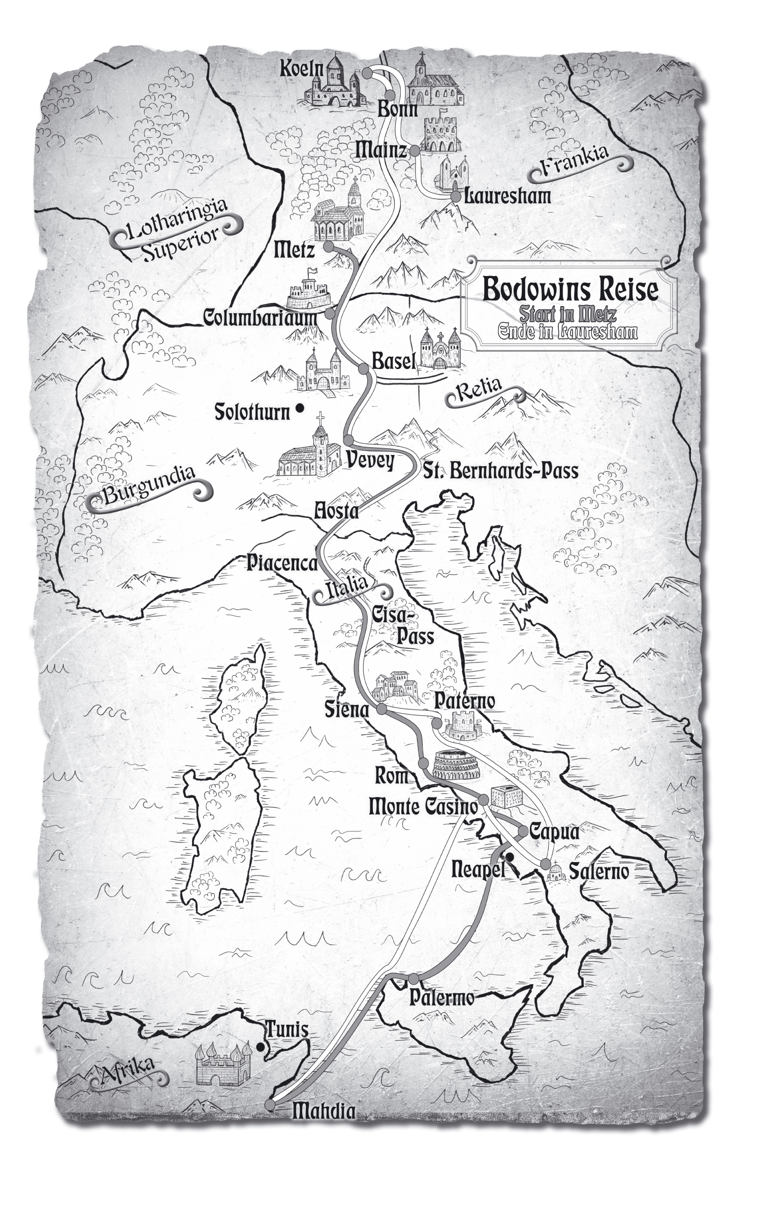 Nichtsahnend bekommt der junge Novize Ignatius vom alten Mönch Bodowin ein geheimes Buch überreicht sowie den Auftrag, dieses Vermächtnis unter strenger Geheimhaltung nach Lauresham zu bringen. Doch die Ereignisse überstürzen sich und Ignatius sieht sich gezwungen, seine Heimatabtei völlig unvorbereitet zu verlassen.Auf der langen, entbehrungsreichen Reise nach Osten liest er jede Nacht einige Seiten aus Bodowins Biographie und taucht immer tiefer in das geheimnisvolle Leben seines Ziehvaters ein.Es zeigt sich, dass Bodowin in die Fehde zwischen Erzbischof Heribert von Köln und König Heinrich II um die Kaiserkrone geraten war und ein düsteres Geheimnis um die Abtei von Lauresham und das Kohlbachtal offenbart wird.Das Wissen um Mord, Verschwörung und Kindesraub ist derart brisant, dass gedungene Mörder sich auf Ignatius' Fährte machen. Ein Wettlauf gegen die Zeit und die politischen Umstürze des Sohnes Heinrichs II zwingen den Benediktiner in eine Welt voll Gewalt, Verrat und Angst.Wird der junge Mönch es schaffen, ihnen zu entkommen? Und was hat es mit dem geheimnisvollen Buch auf sich?