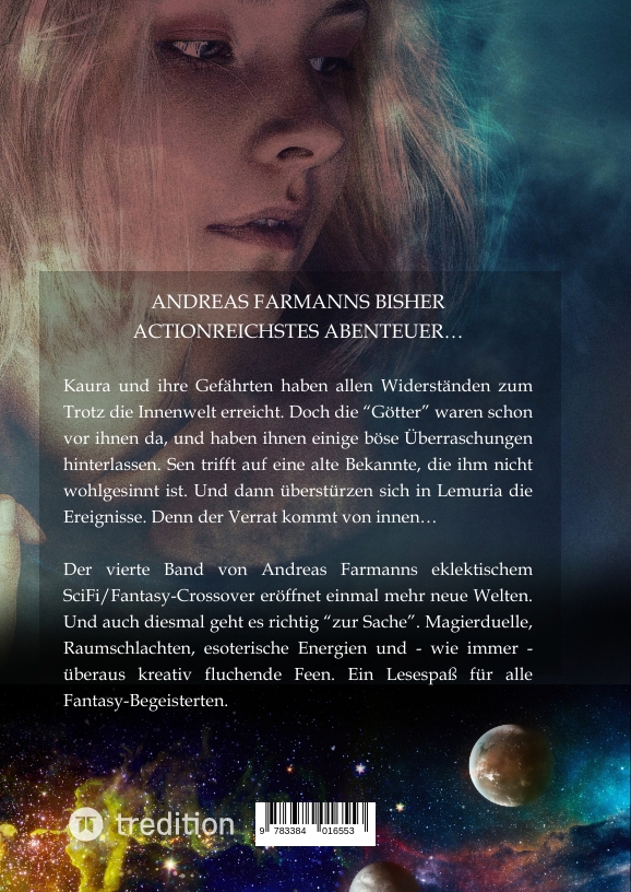 | Schlagworte | action • Alternate History • Alternativwelten • Atlantis • außerirdische Zivilisationen • Beziehungsmodelle • Dimensionsübergreifend • Esoterische Energien • esoterische Fantasy • Feen • Feenmagie • Freundschaft • Freundschaft zwischen Spezies • gaia • Gesellschaftskritik • Gesellschaftsmodelle • Gut gegen Böse • Hohepriesterinnen • Humor • Inspiration • Lemuria • Magie • Magiergesellschaften • magische Portale • Naturmagie • Polyamorie • Pyramiden • Raumschiffe • Raumschlachten • Rebellion • Revolution • Schirmzauber • Schottische Magie • Seefahrt • Space Opera-Elemente • Toleranz • Unsterblichkeit • Vielfalt • Weltraumimperien • Zauberer |