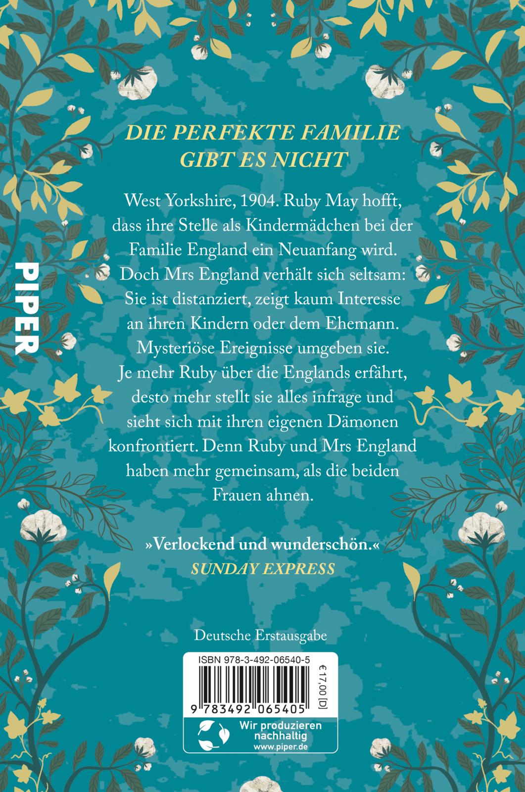 West Yorkshire, 1904. Ruby May hofft, dass ihre Stelle als Kindermädchen bei der wohlhabenden Familie England der lang ersehnte Neuanfang wird. Doch die schöne Mrs England verhält sich seltsam: Sie ist distanziert und verschlossen, zeigt kaum Interesse an ihren Kindern oder dem charmanten Ehemann. Mysteriöse Ereignisse umgeben sie. Je mehr Ruby über die Englands erfährt, desto mehr stellt sie alles infrage, was sie zu wissen glaubt und sieht sich mit ihren eigenen Dämonen konfrontiert. Denn Ruby und Mrs England haben mehr gemeinsam, als die beiden Frauen ahnen.