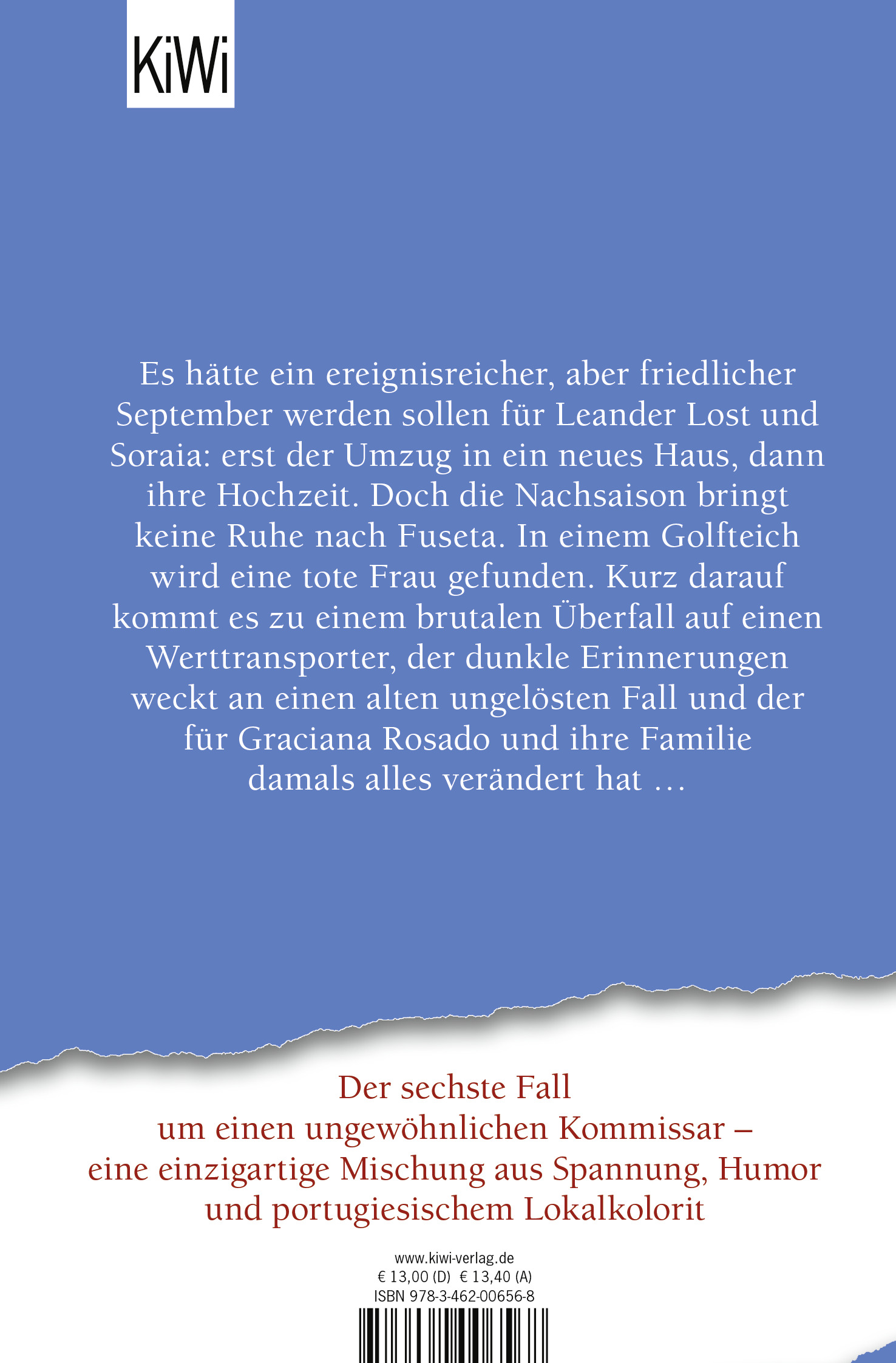 Es hätte ein ereignisreicher, aber friedlicher September werden sollen für Leander Lost und Soraia: erst der Umzug in ein neues Haus, dann ihre Hochzeit. Doch die Nachsaison bringt keine Ruhe nach Fuseta. In einem Golfteich wird eine tote Frau gefunden. Kurz darauf kommt es zu einem brutalen Überfall auf einen Geldtransporter, der dunkle Erinnerungen an einen alten ungelösten Fall weckt.