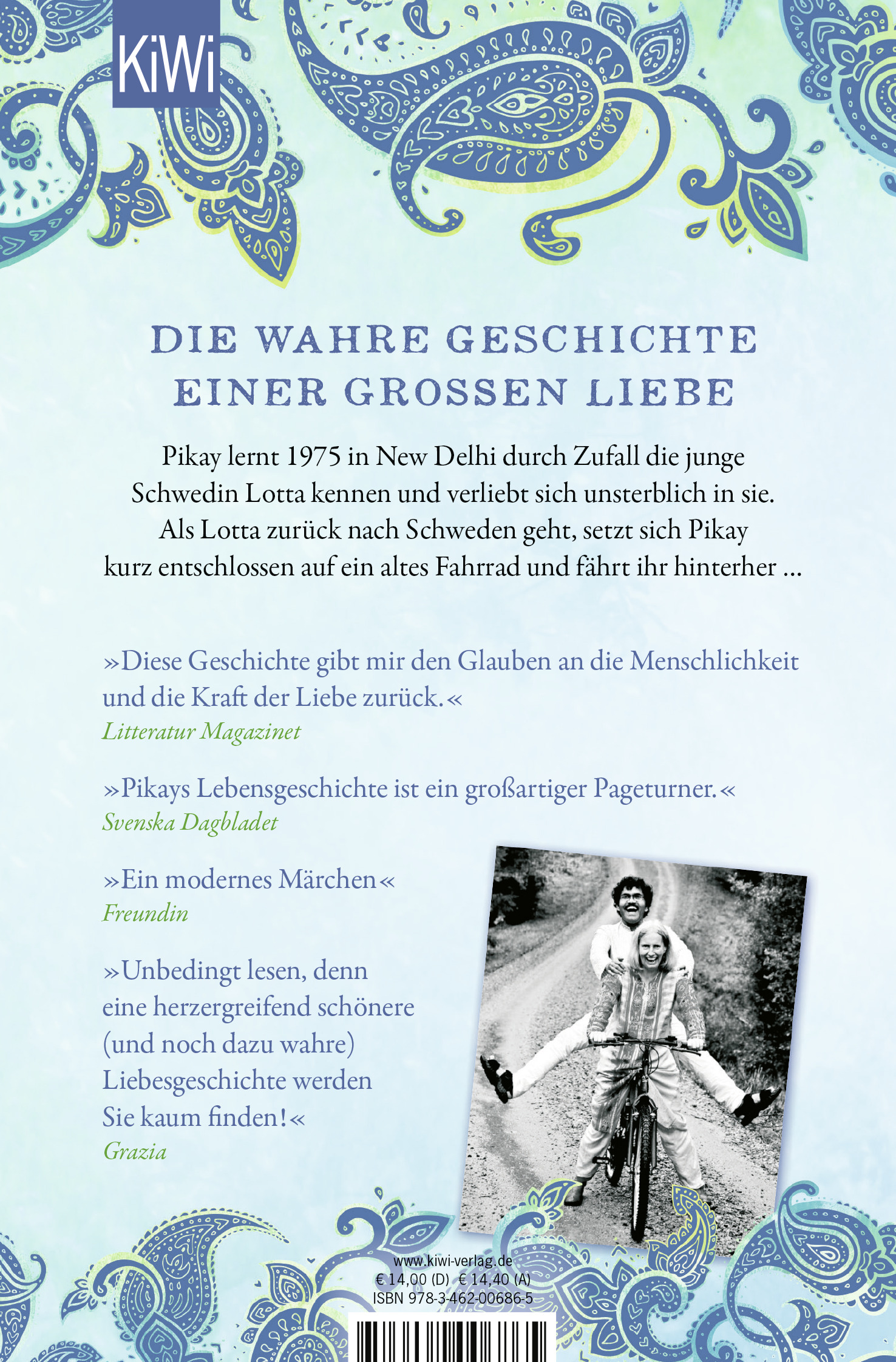 Als Lotta zurück nach Schweden geht, stehen die Chancen schlecht für die beiden - wäre da nicht ein altes Fahrrad. Damit macht sich Pikay auf den Weg, um die 7.000 Kilometer von Asien nach Europa zurückzulegen. Auch zahlreiche Rückschläge können ihn nicht aufhalten, bis er schließlich tatsächlich in der Heimat Lottas ankommt, einer völlig anderen Welt ... Um das Happy End gleich zu verraten: Heute sind die beiden seit über 45 Jahren verheiratet, haben zwei erwachsene Kinder und leben auf einem alten Bauernhof in der Nähe von Borås. Ihre Geschichte berührt weiterhin und zeigt, welche Wege die Liebe manchmal geht.