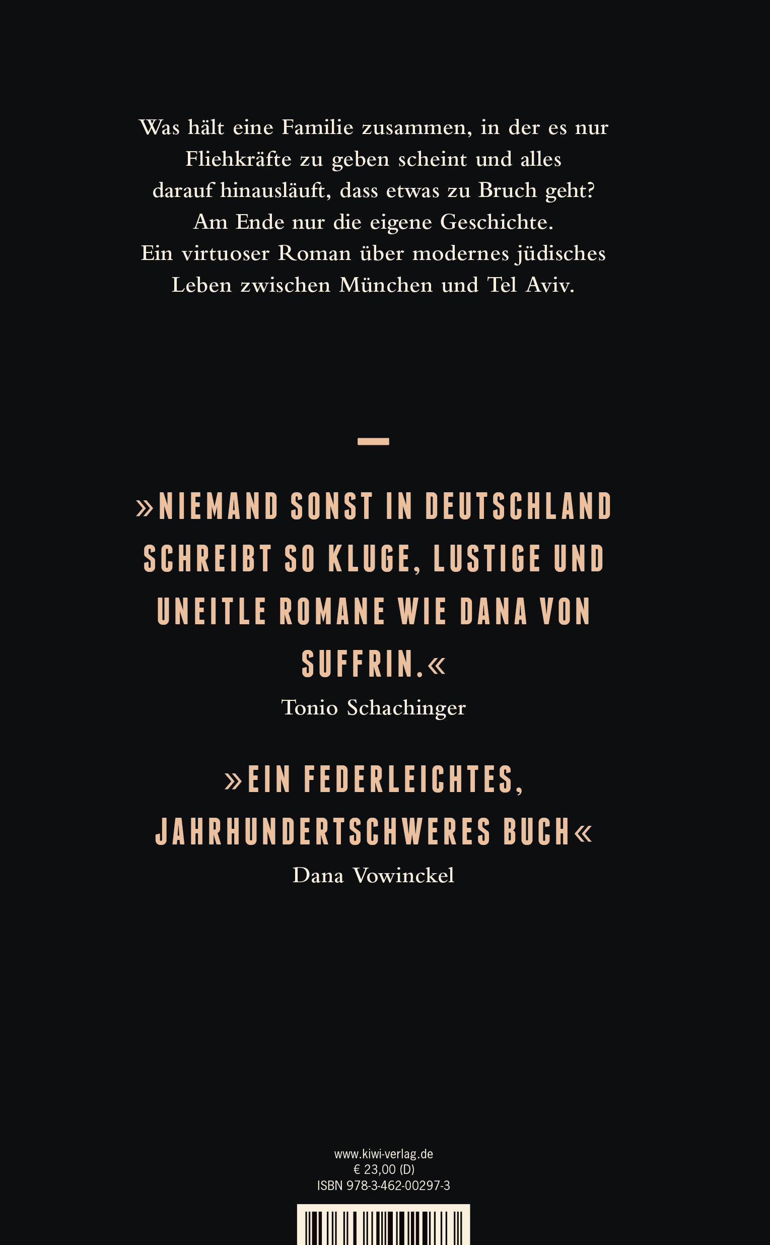 Was hält eine Familie zusammen, in der es nur Fliehkräfte zu geben scheint und alles darauf hinausläuft, dass etwas zu Bruch geht? Am Ende nur die eigene Geschichte. Dana von Suffrin hat einen virtuosen Roman über modernes jüdisches Leben zwischen München und Tel Aviv geschrieben.