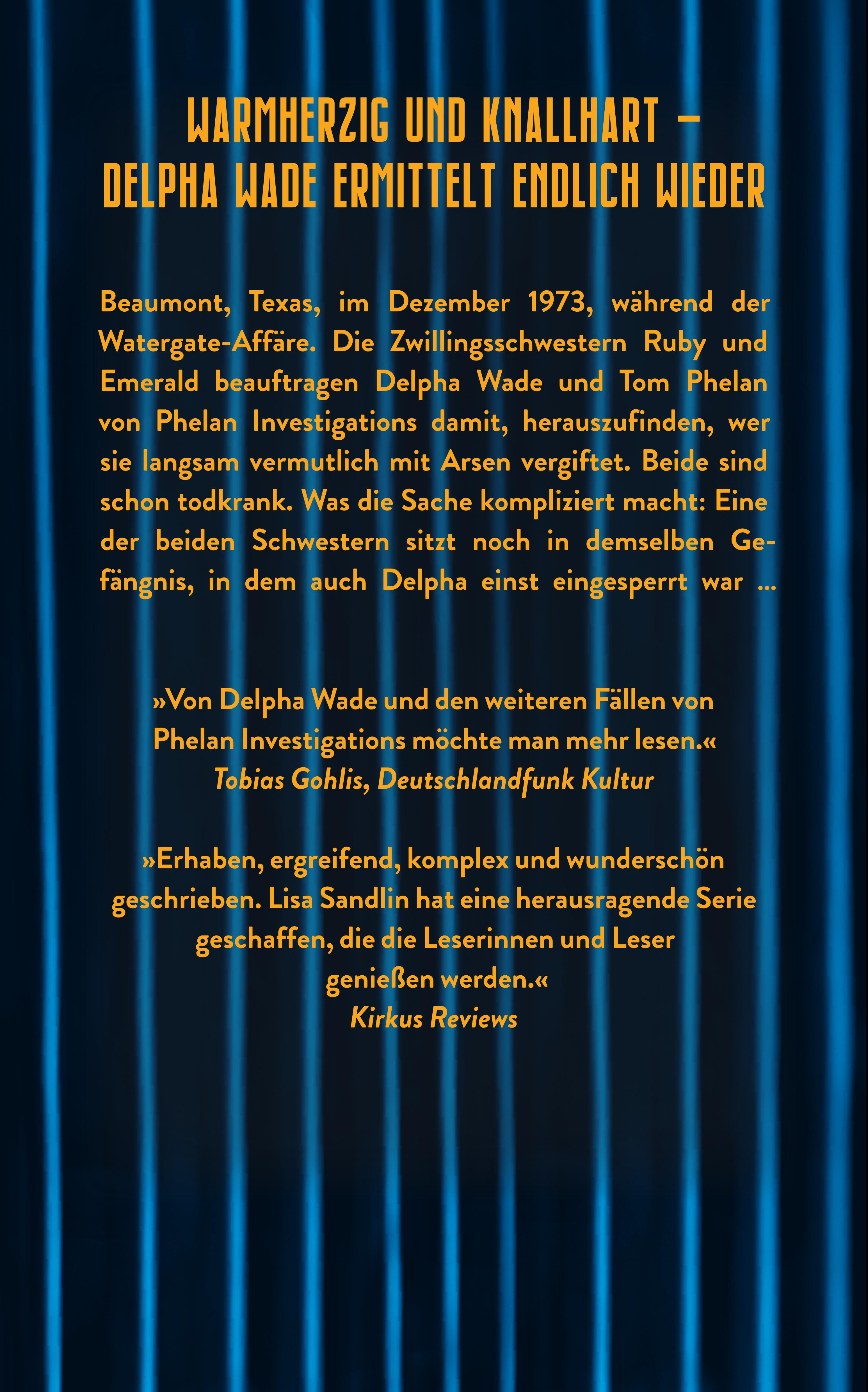 »Lisa Sandlin erzählt mit Präzision, Empathie und Komik – dazu ist Delpha Wade eine großartige Hauptfigur. Die Kriminalliteratur kann mehr solcher Autorinnen und Figuren gebrauchen.«