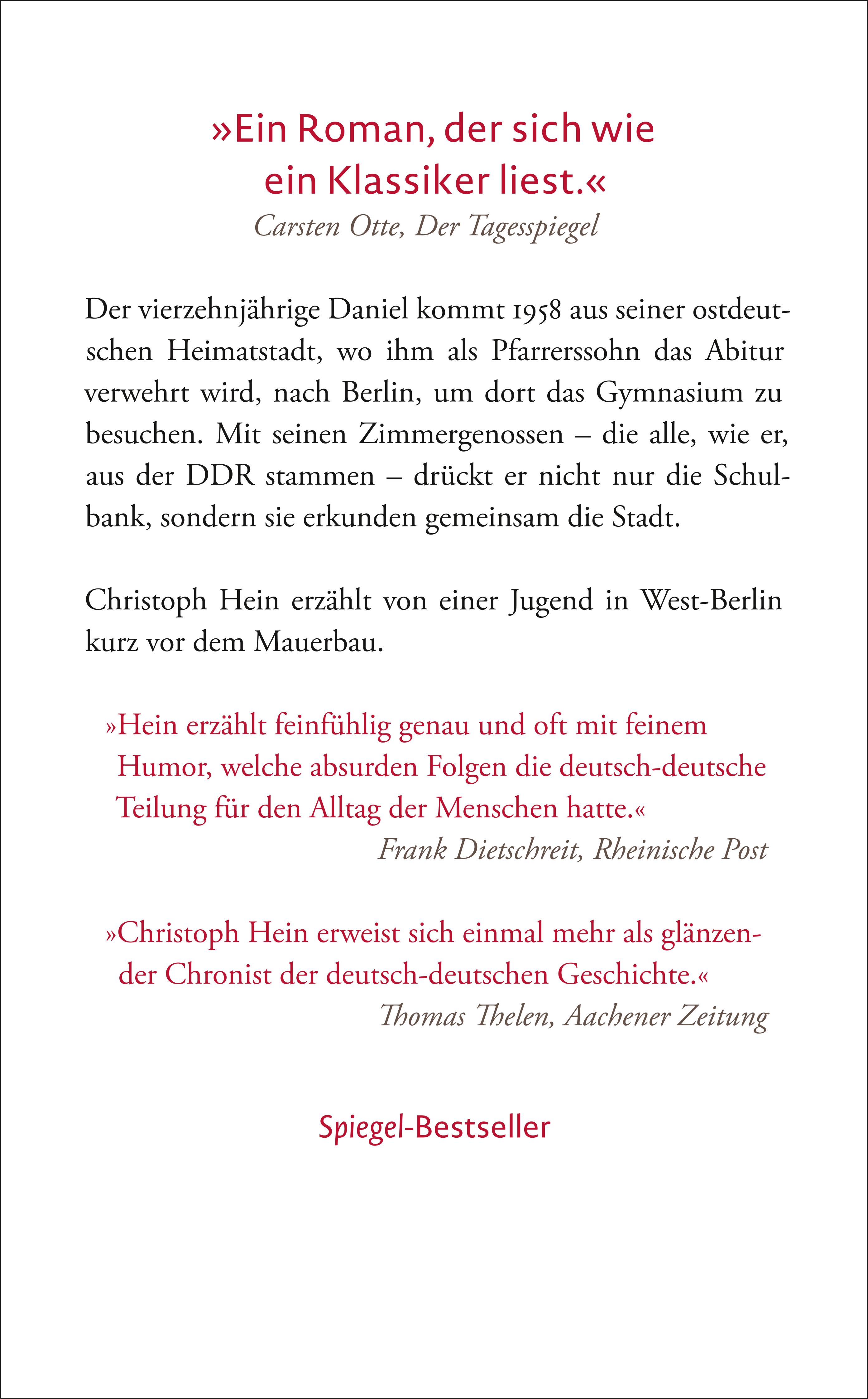 »In seinem neuen Roman ... beweist Christoph Hein erneut sein Können, Zeitgeschichte feinfühlig und nachvollziehbar zu erzählen.«