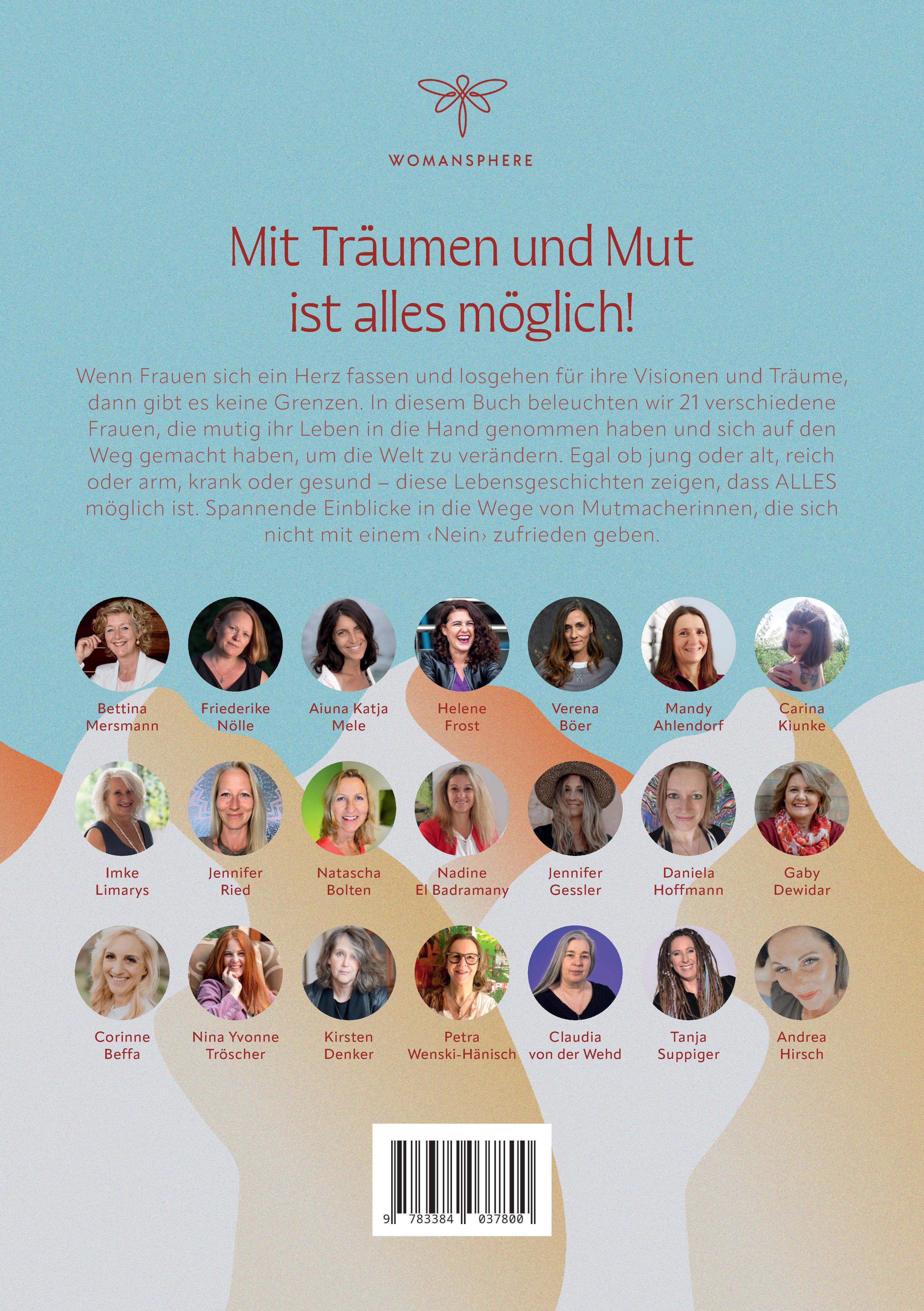 Ein Buch über Frauen, die sich ein Herz gefasst haben und mutig ihrem Weg gefolgt sind, ohne dabei Hindernisse als Endstation zu betrachten. Es geht um die Kraft der Gemeinschaft und die Magie der Weiblichkeit.Geschrieben von Verena Böer, Imke Limarys Simons, Aiuna Katja Mele, Kirsten Denker, Petra Wenski-Hänisch, Gaby Dewidar, Bettina Mersmann, Corinne Beffa, Natascha Bolten, Claudia von der Wehd, Helene Frost, Carina Kiunke, Daniela FiralaMa Hoffmann, Jennifer Gessler, Nina Yvonne Tröscher, Nadine El Badramany, Mandy Ahlendorf, Friederike Nölle, Tanja Suppiger, Jennifer EvolutionNow, Andrea Hirsch