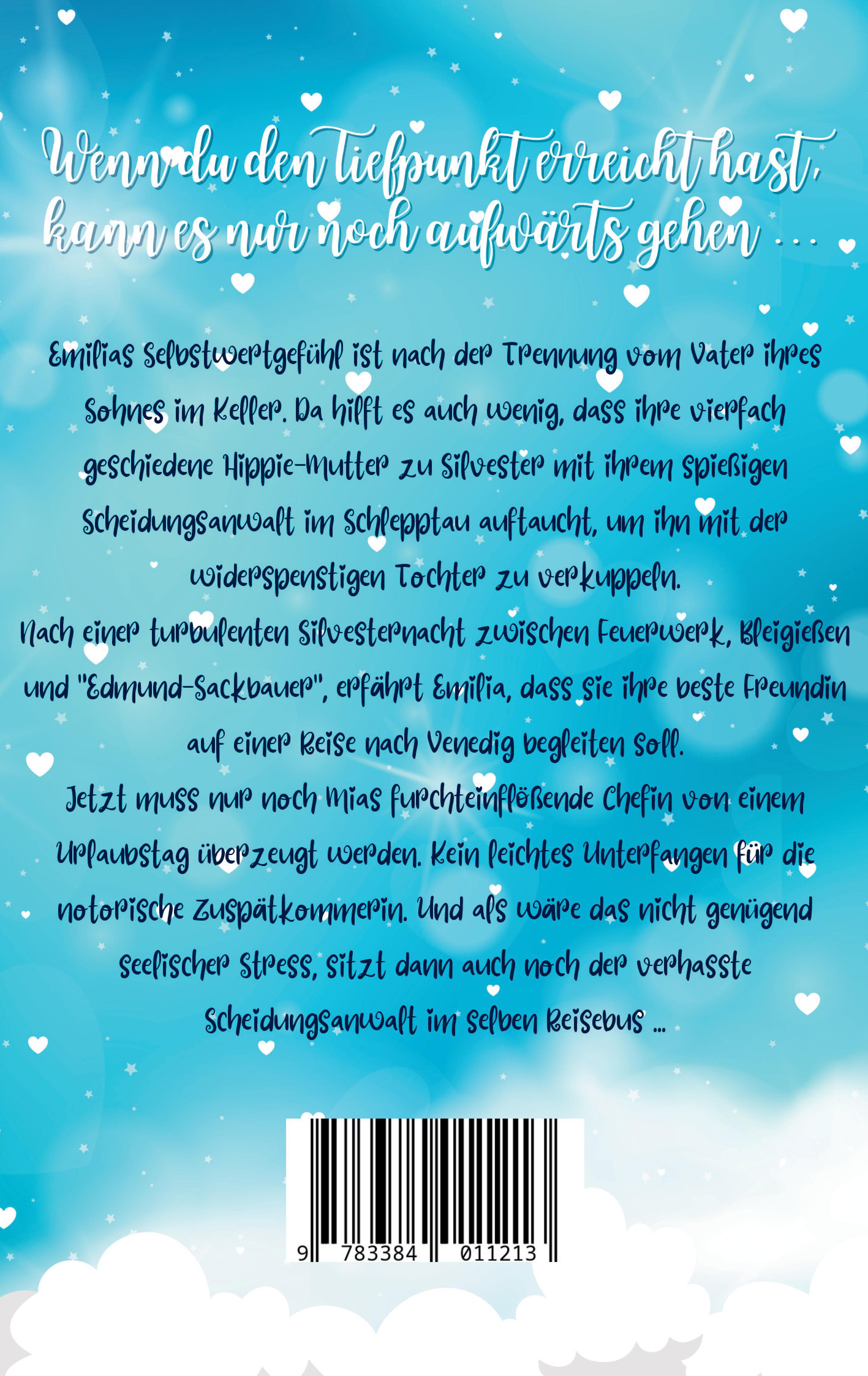 | Schlagworte | Chicklit • Hippie-Mutter • Humor • Karneval • Lebenskrise • Liebe • Moderne Frauen • Romantische Komödie • Romanze • Scheidungsanwalt • Silvester • Tagträumerin • Venedig • Wien |