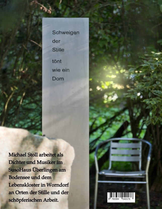 Michael Stoll, geboren am 15. Februar 1964 in Bogen /Niederbayern. Aufgewachsen in Überlingen am Bodensee. Studium in Berlin und Konstanz. Freiberuflich als Dichter und Musiker seit 1992 tätig. Gründung des SusoHaus Überlingen und Lebensklosters in Worndorf bei Neuhausen als Orte der Stille und schöpferischen Arbeit. Tätig als Musiker und Dichter und spiritueller Mentor einer Mystik der Gelassenheit nach Meister Eckhart.