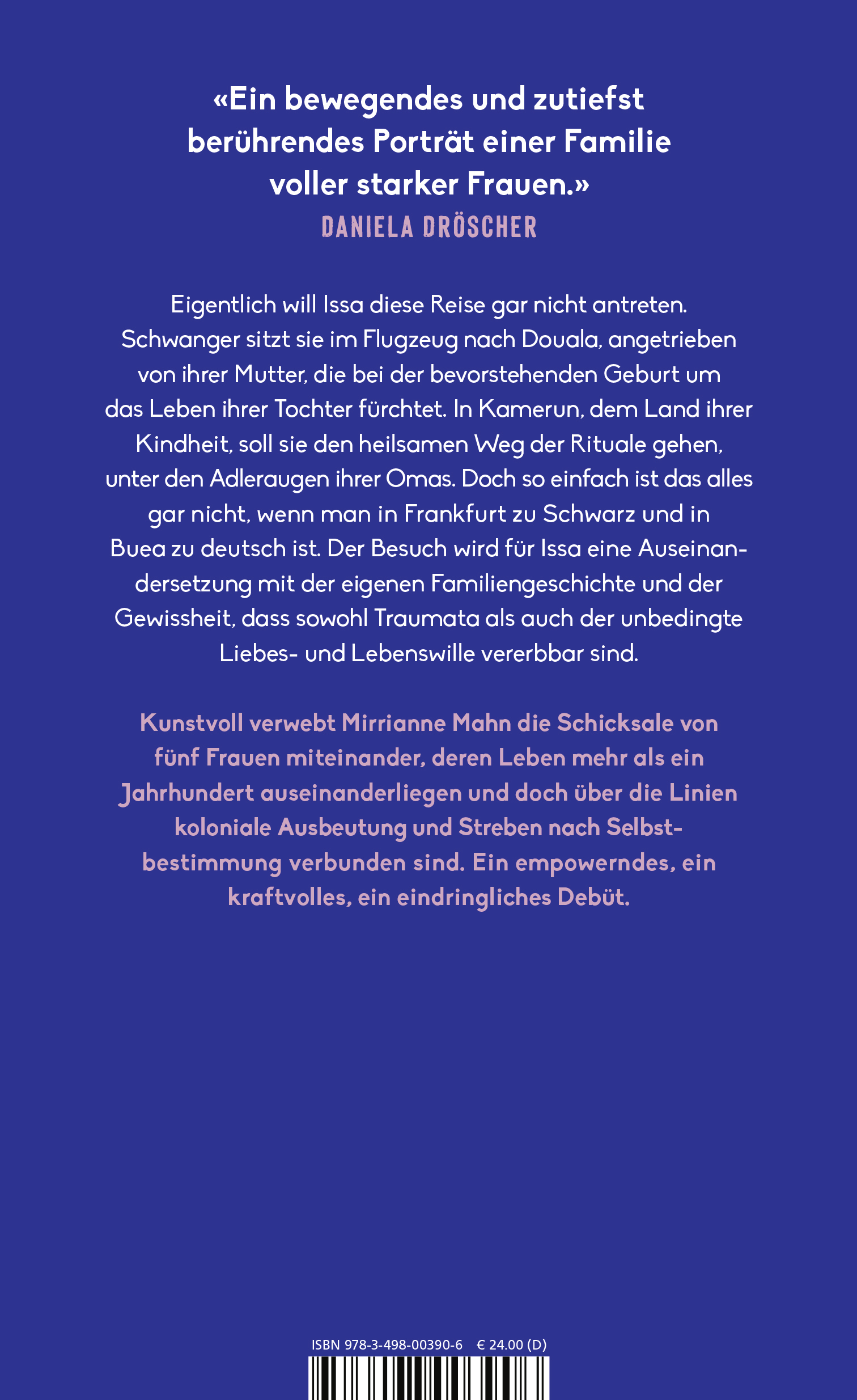 Ein großer, fünf Frauengenerationen umspannender Familienroman, der von Kamerun bis nach Deutschland reicht und von dem Versuch einer jungen Frau erzählt, den Kreislauf aus Unterdrückung und Abhängigkeit zu durchbrechen.