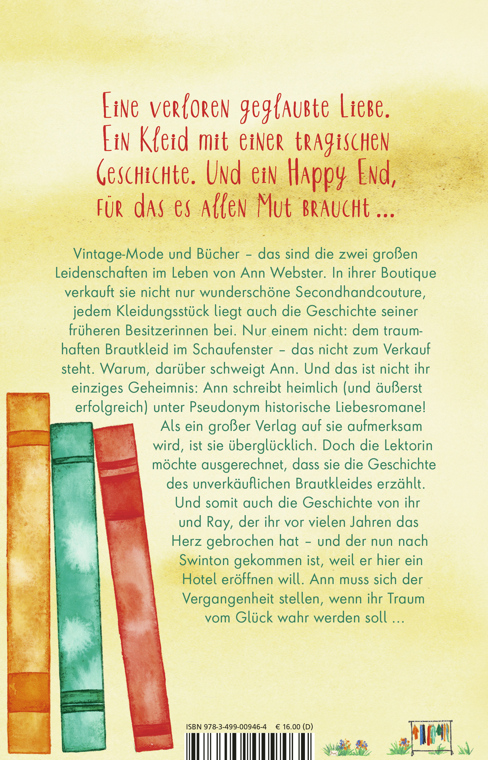 Vintage-Mode und Bücher - das sind die zwei großen Leidenschaften im Leben von Ann Webster. In ihrer Boutique verkauft sie nicht nur wunderschöne Secondhandcouture, jedem Kleidungsstück liegt auch die Geschichte seiner früheren Besitzerinnen bei. Was niemand wissen darf: Ann schreibt heimlich unter Pseudonym ziemlich pikante Liebesromane! Als ein großer Verlag auf Ann aufmerksam wird, ist sie überglücklich. Doch die Lektorin möchte ausgerechnet, dass sie die Geschichte des unverkäuflichen Brautkleides in ihrem Schaufenster erzählt. Und somit auch die Geschichte von ihr und Ray, der ihr vor vielen Jahren das Herz gebrochen hat und der nun nach Swinton gekommen ist, weil er die stillgelegte Whisky-Destillerie wiedereröffnen will. Ann muss sich der Vergangenheit stellen, wenn ihr Traum vom Glück wahr werden soll.