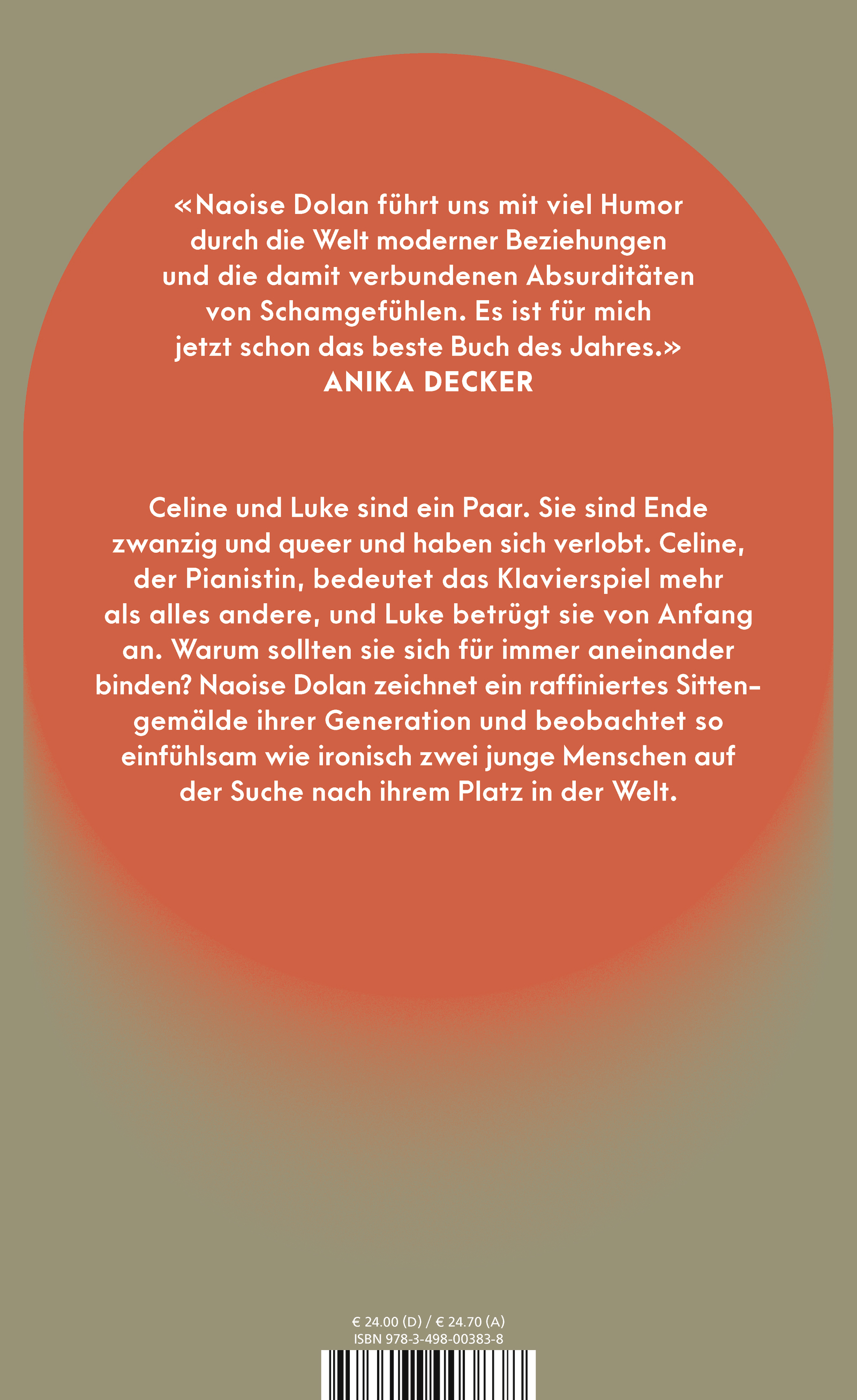 «Naoise Dolan führt uns mit viel Humor durch die Welt moderner Beziehungen und die damit verbundenen Absurditäten von Schamgefühlen. Es ist für mich jetzt schon das beste Buch des Jahres.» Anika Decker