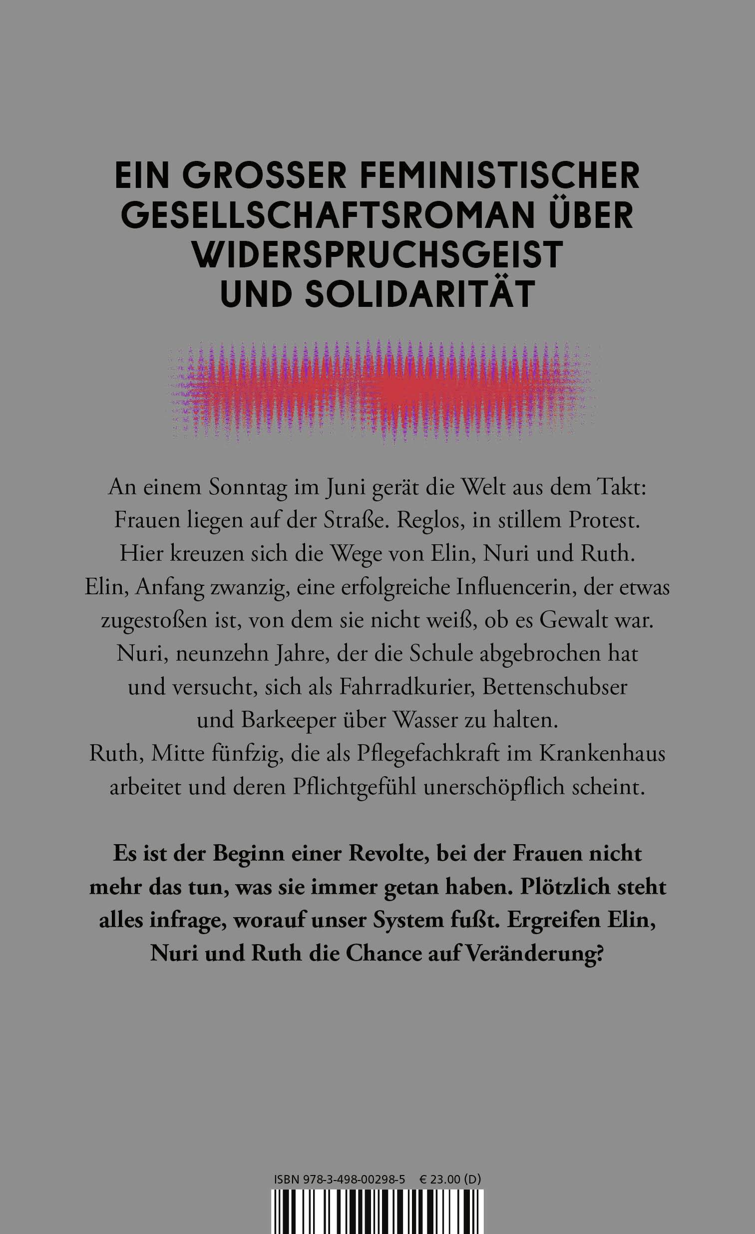 An einem Sonntag im Juni gerät die Welt aus dem Takt: Frauen liegen auf der Straße. Reglos, in stillem Protest. Hier kreuzen sich die Wege von Elin, Nuri und Ruth.