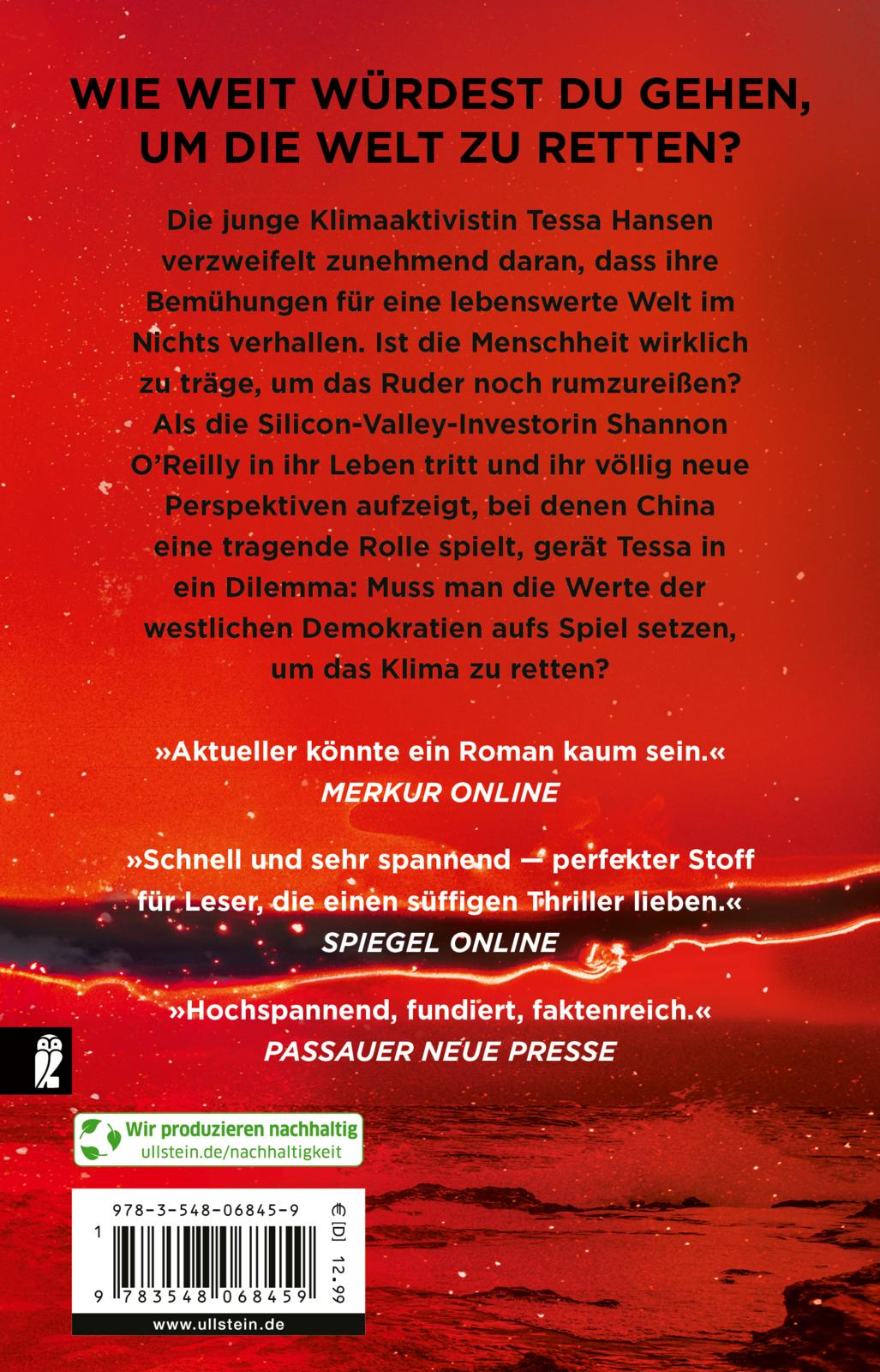 Tessa Hansen hat ihr Leben dem Kampf gegen die Klimakatastrophe verschrieben. Als sie die Silicon ValleyInvestorin Shannon O'Reilly kennenlernt, findet sie in dieser wider Erwarten eine Gleichgesinnte. Doch Tessa erkennt bald, dass Shannon keine Skrupel hat, wenn es darum geht, das Klima zu schützen ... Unterdessen treibt China ein eigenes Vorhaben gigantischen Ausmaßes voran, das die handlungsunfähigen westlichen Demokratien vor Rätsel stellt. Ein Wettlauf gegen die Zeit beginnt, und bald muss sich Tessa die Frage stellen, was sie bereit ist, für ihre Überzeugungen zu opfern.