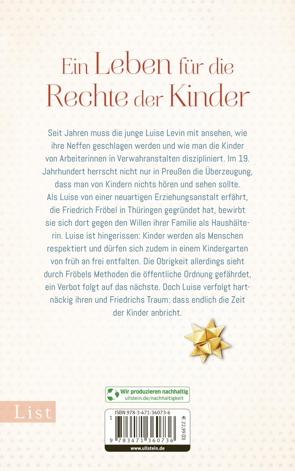 1830: Nicht nur in Preußen herrscht die Überzeugung, dass man von Kindern nichts hören und sehen sollte. Um sie vom Weg der Sünde abzubringen, ist körperliche Züchtigung notwendig. Entsetzt verfolgt die junge Luise Levin, wie ihre Neffen geschlagen werden und wie man die Kinder von Arbeiterinnen in Verwahranstalten diszipliniert. Als sie von einer neuartigen Erziehungsanstalt erfährt, die Friedrich Fröbel in Thüringen gegründet hat, bewirbt sie sich dort gegen den Willen ihrer Familie als Haushälterin. Fröbels Ideen sind revolutionär: Kinder sollen spielend die Welt begreifen, sie werden als Menschen respektiert und unabhängig ihrer Herkunft gefördert. Die Obrigkeit allerdings sieht durch Fröbels Methoden die öffentliche Ordnung gefährdet, ein Verbot folgt auf das nächste. Doch Luise verfolgt hartnäckig ihren und Friedrichs Traum: dass endlich die Zeit der Kinder anbricht.