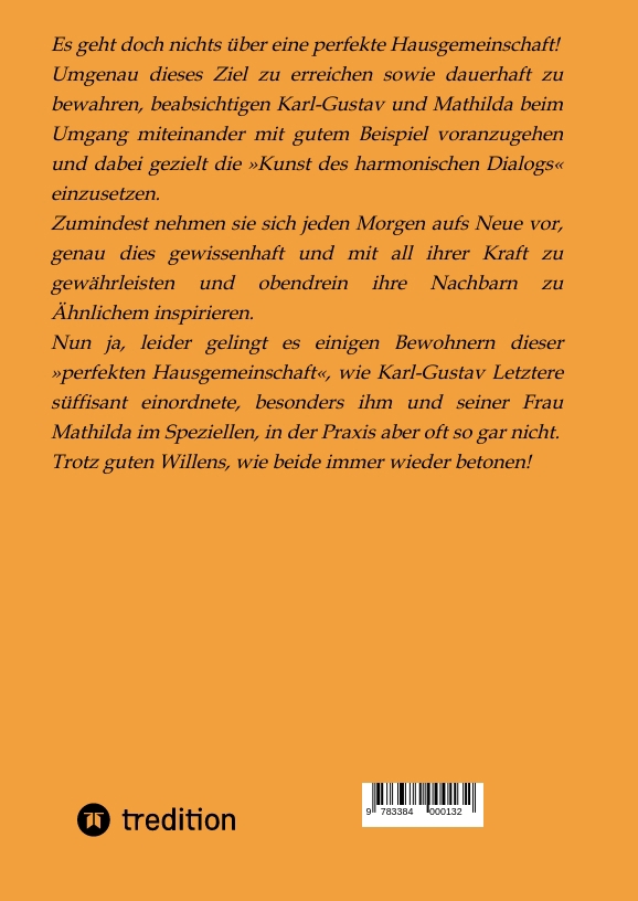 In dem dritten Band der Reihe »Unsere lieben Nachbarn« wird wiederum über das teils schwierige Zusammenleben einer Hausgemeinschaft berichtet, in der Mathilda und besonders Karl-Gustav eine prägende Stellung einnehmen. Die Überwindung der alltäglichen Probleme werden süffisant sowie gewürzt mit einem ordentlichen Schuss Satire, dabei im Besonderen die in dieser Hausgemeinschaft vielfach geführten - wenn auch teilweise etwas merkwürdig anmutenden - Dialoge dargestellt.Letzteres macht sich gravierend bemerkbar, wenn Karl-Gustav in einem Gespräch involviert ist. Und das, obwohl jener der Meinung ist, dass er sich stets um einen sinnvollen sowie zielorientierten und obendrein harmonischen Informationsaustausch bemüht!