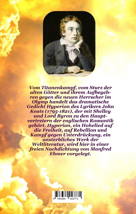 Vom Titanenkampf, vom Sturz der alten Götter und ihrem Aufbegehren gegen die neuen Herrscher im Olymp handelt das dramatische Gedicht Hyperion des Lyrikers John Keats (1795-1821), der mit Shelley und Lord Byron zu den Hauptvertretern der englischen Romantik gehört. Hyperion, ein Hohelied auf die Freiheit, auf Rebellion und Kampf gegen Unterdrückung, ein unsterbliches Werk der Weltliteratur, wird hier in einer freien Nachdichtung von Manfred Ehmer vorgelegt.