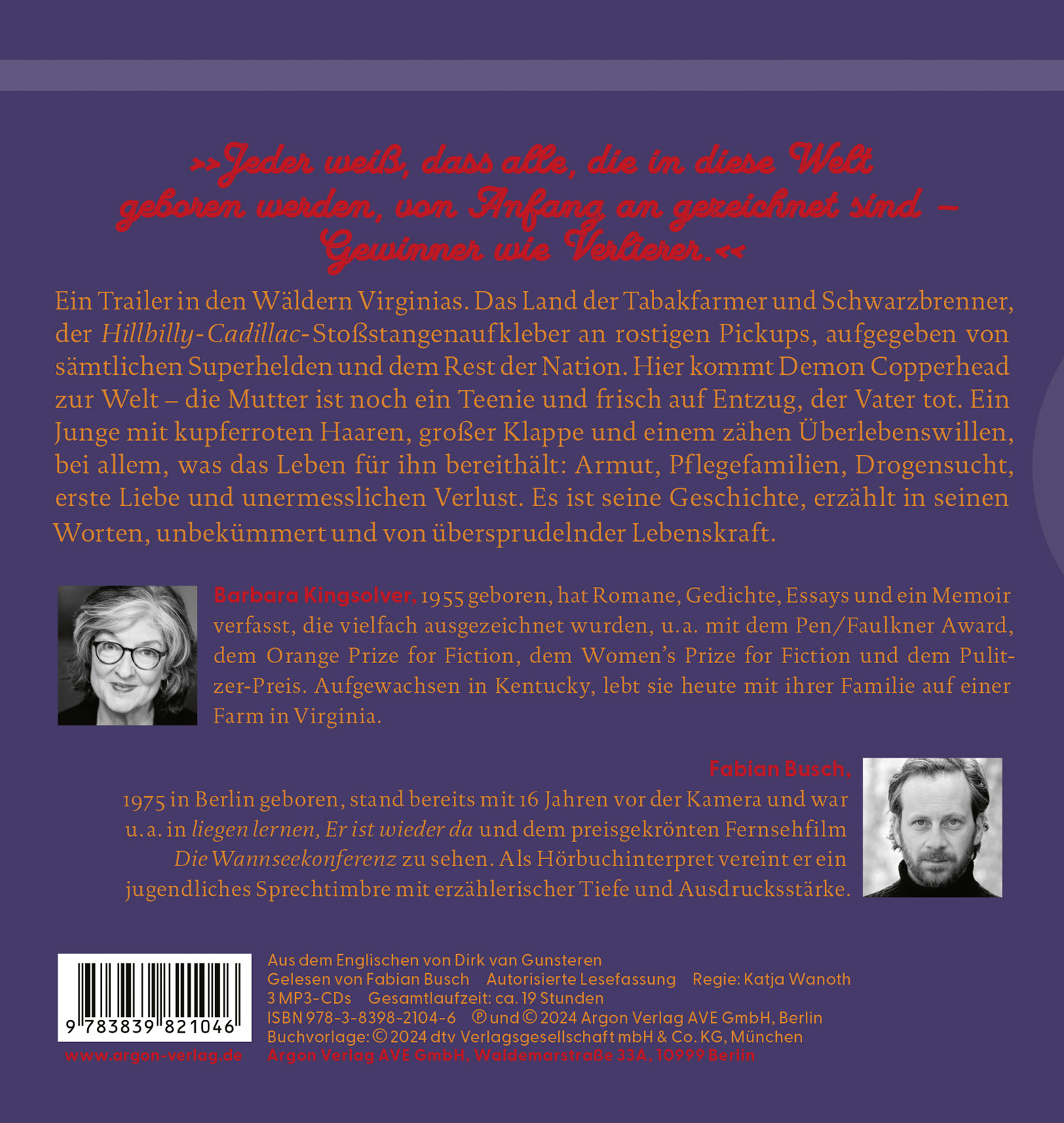 Demon Copperhead ist ein mitreißender Roman über ein Leben auf Messers Schneide, in dem in jedem Moment Hoffnung aufscheint. In der Hörbuchfassung leiht Fabian Busch Demon Copperhead seine jugendliche, einprägsame Stimme.