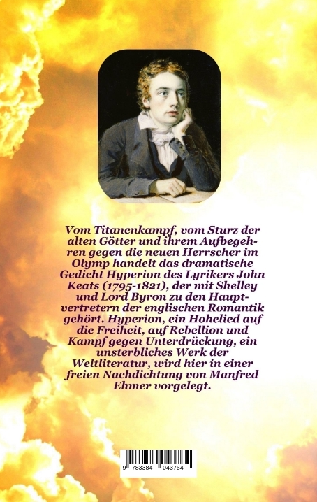 Vom Titanenkampf, vom Sturz der alten Götter und ihrem Aufbegehren gegen die neuen Herrscher im Olymp handelt das dramatische Gedicht Hyperion des Lyrikers John Keats (1795-1821), der mit Shelley und Lord Byron zu den Hauptvertretern der englischen Romantik gehört. Hyperion, ein Hohelied auf die Freiheit, auf Rebellion und Kampf gegen Unterdrückung, ein unsterbliches Werk der Weltliteratur, wird hier in einer freien Nachdichtung von Manfred Ehmer vorgelegt.
