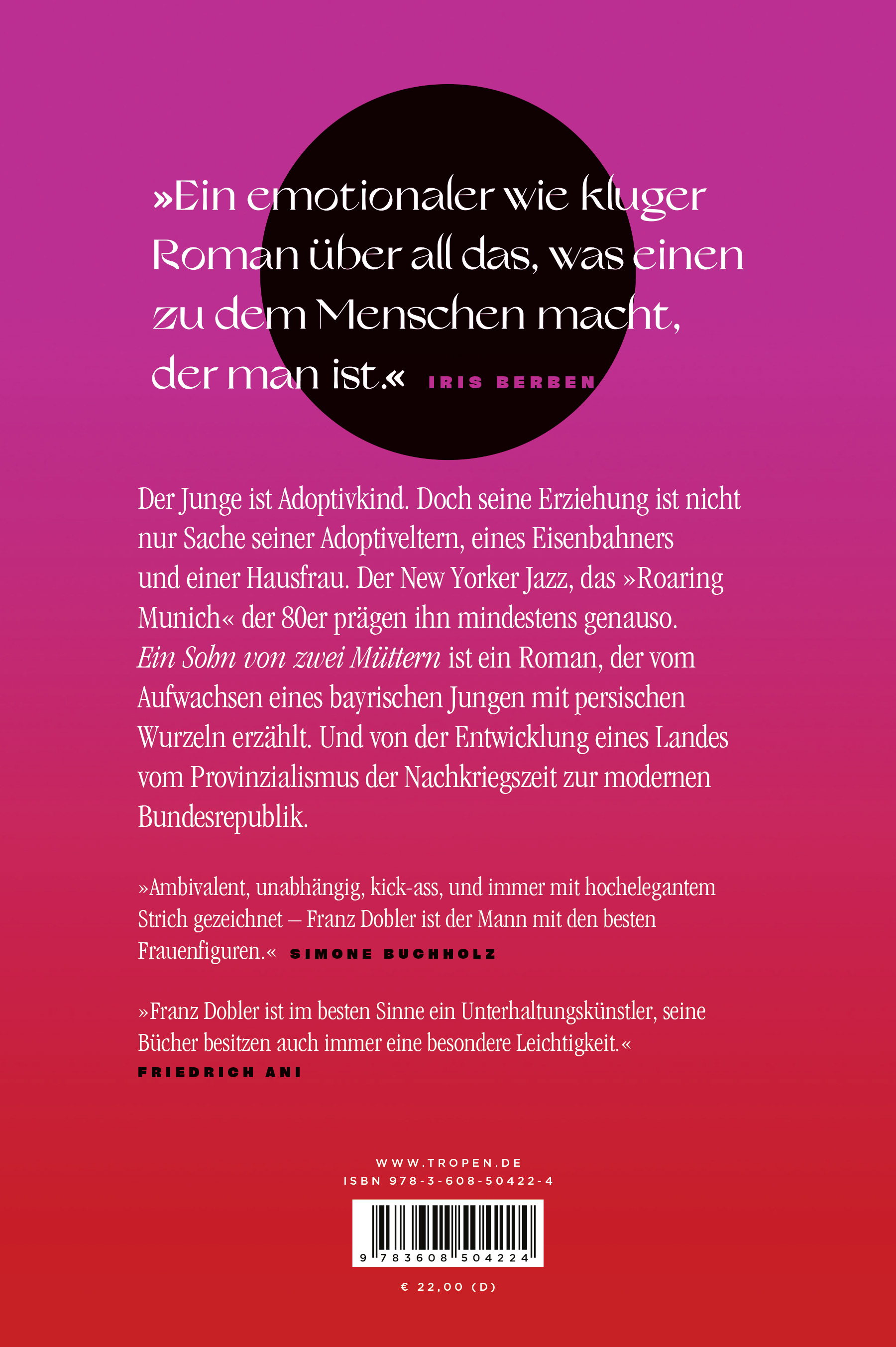 Der Junge ist Adoptivkind. Doch seine Erziehung ist nicht nur Sache seiner Adoptiveltern, eines Eisenbahners und einer Hausfrau. Der New Yorker Jazz und das »Roaring Munich« der 80er prägen ihn mindestens genauso. Ein Sohn von zwei Müttern ist ein Roman, der vom Aufwachsen eines bayrischen Jungen mit persischen Wurzeln erzählt. Und von der Entwicklung eines Landes vom Provinzialismus der Nachkriegszeit zur modernen Bundesrepublik.