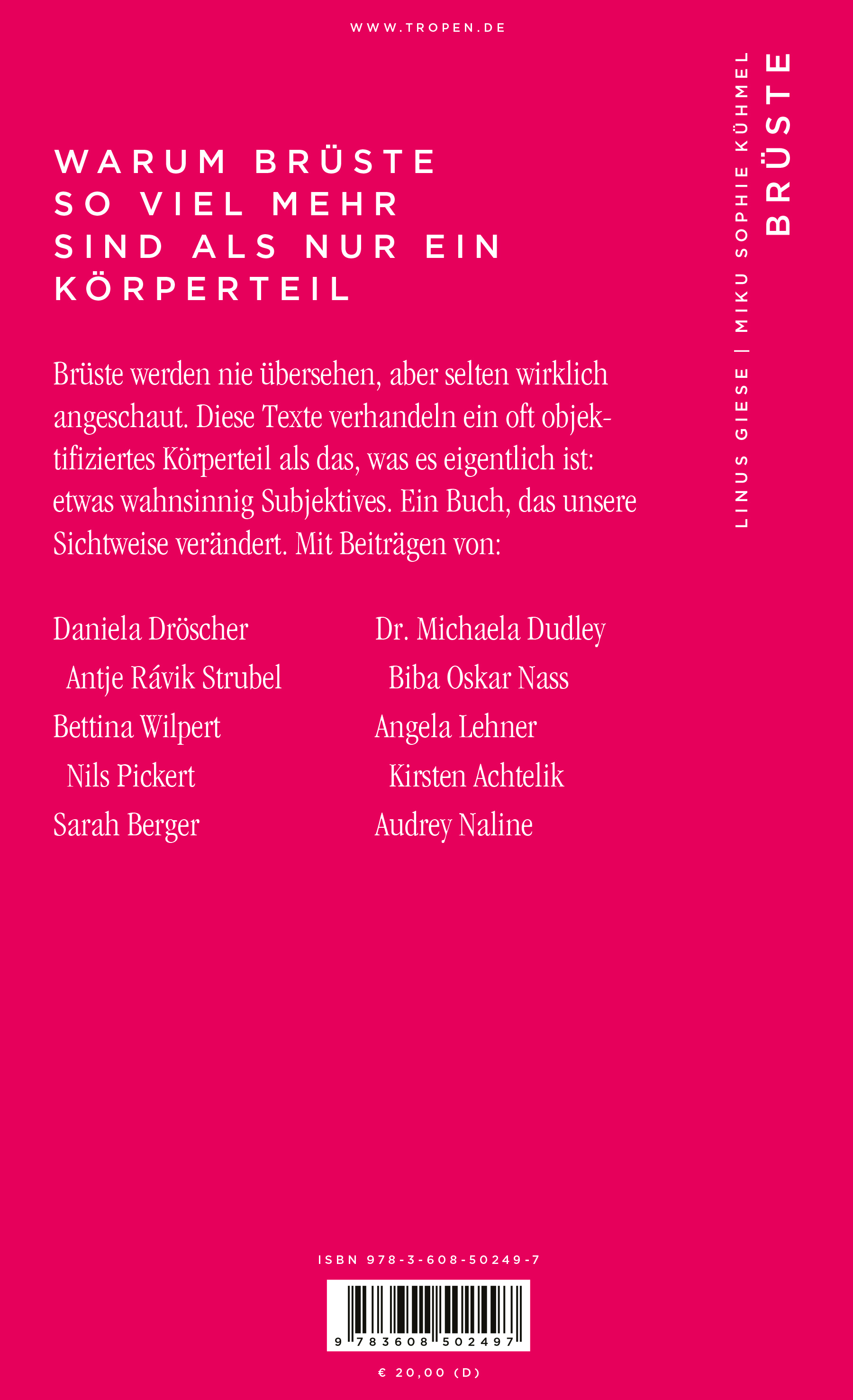 Brüste werden nie übersehen, aber selten wirklich angeschaut. Diese Texte verhandeln ein oft objektifiziertes Körperteil als das, was es eigentlich ist: etwas wahnsinnig Subjektives. Ein Buch, das unsere Sichtweise verändert. Mit Beiträgen von: