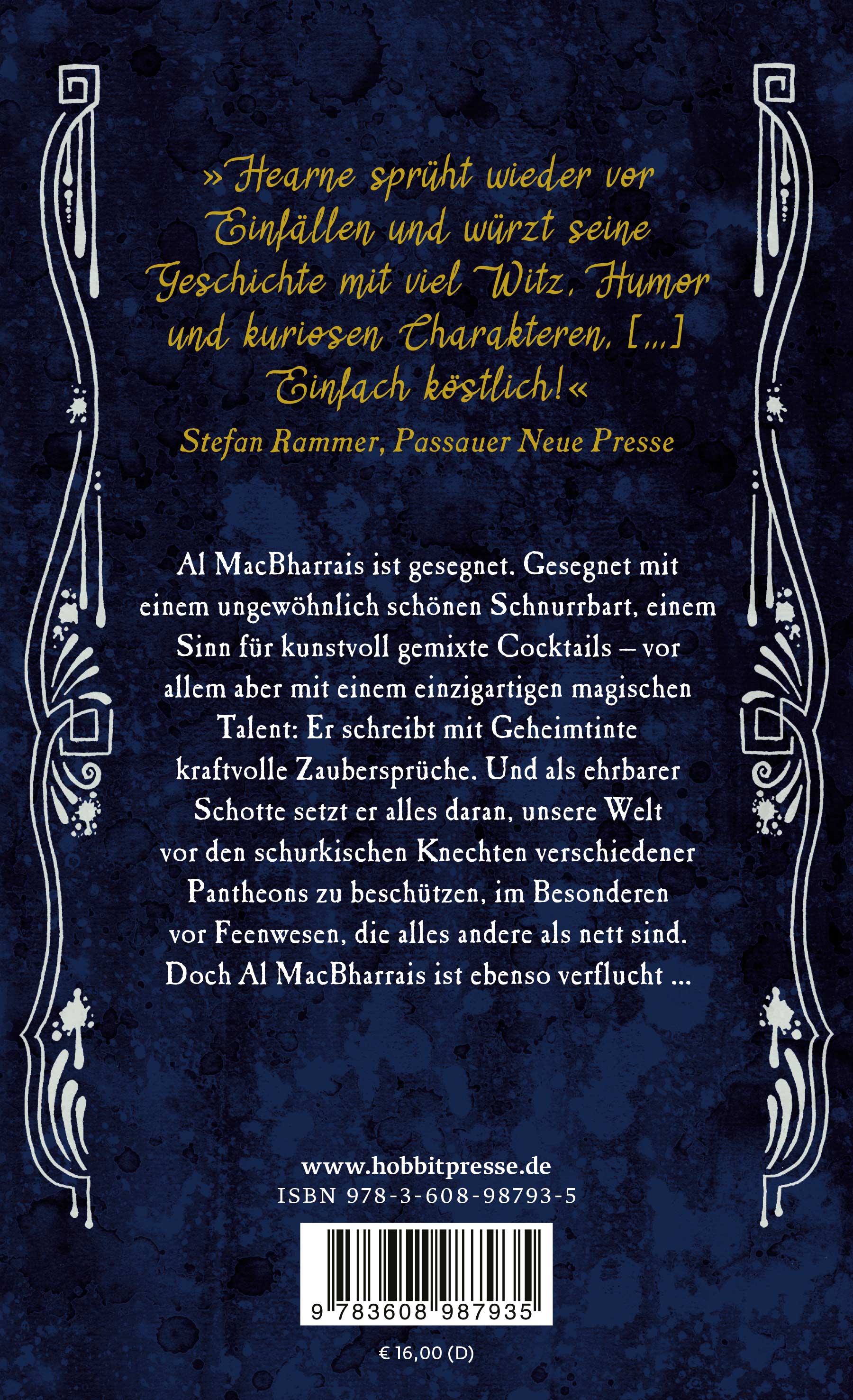Al MacBharrais ist gesegnet. Gesegnet mit einem ungewöhnlich schönen Schnurrbart, einem Sinn für kunstvoll gemixte Cocktails - vor allem aber mit einem einzigartigen magischen Talent. Er schreibt mit Geheimtinte kraftvolle Zaubersprüche. Und als ehrbarer Schotte setzt er alles daran, unsere Welt vor den schurkischen Knechten verschiedener Pantheons zu beschützen, im Besonderen vor Feenwesen, die alles andere als nett sind.